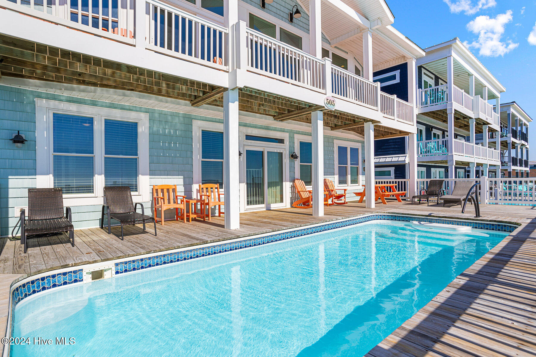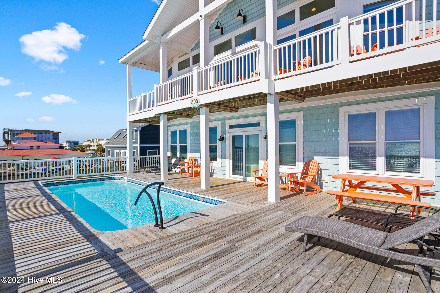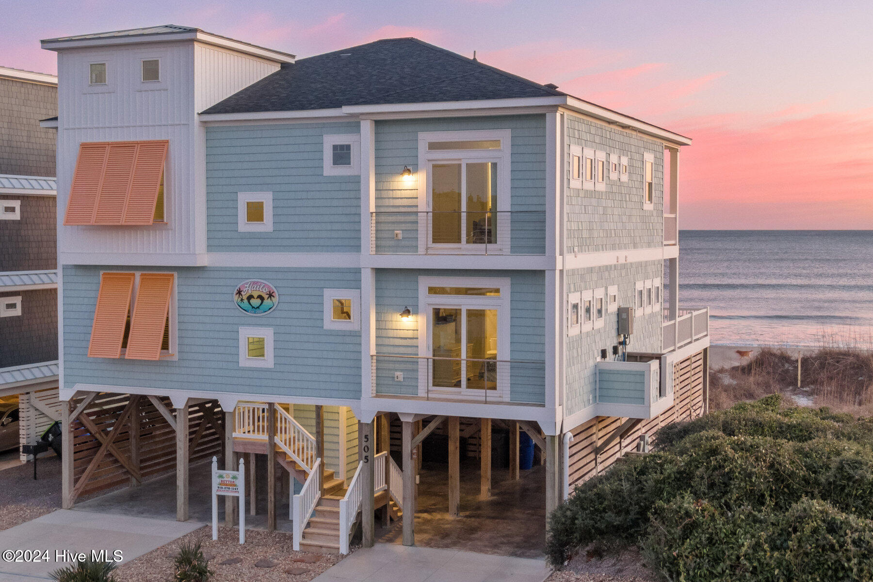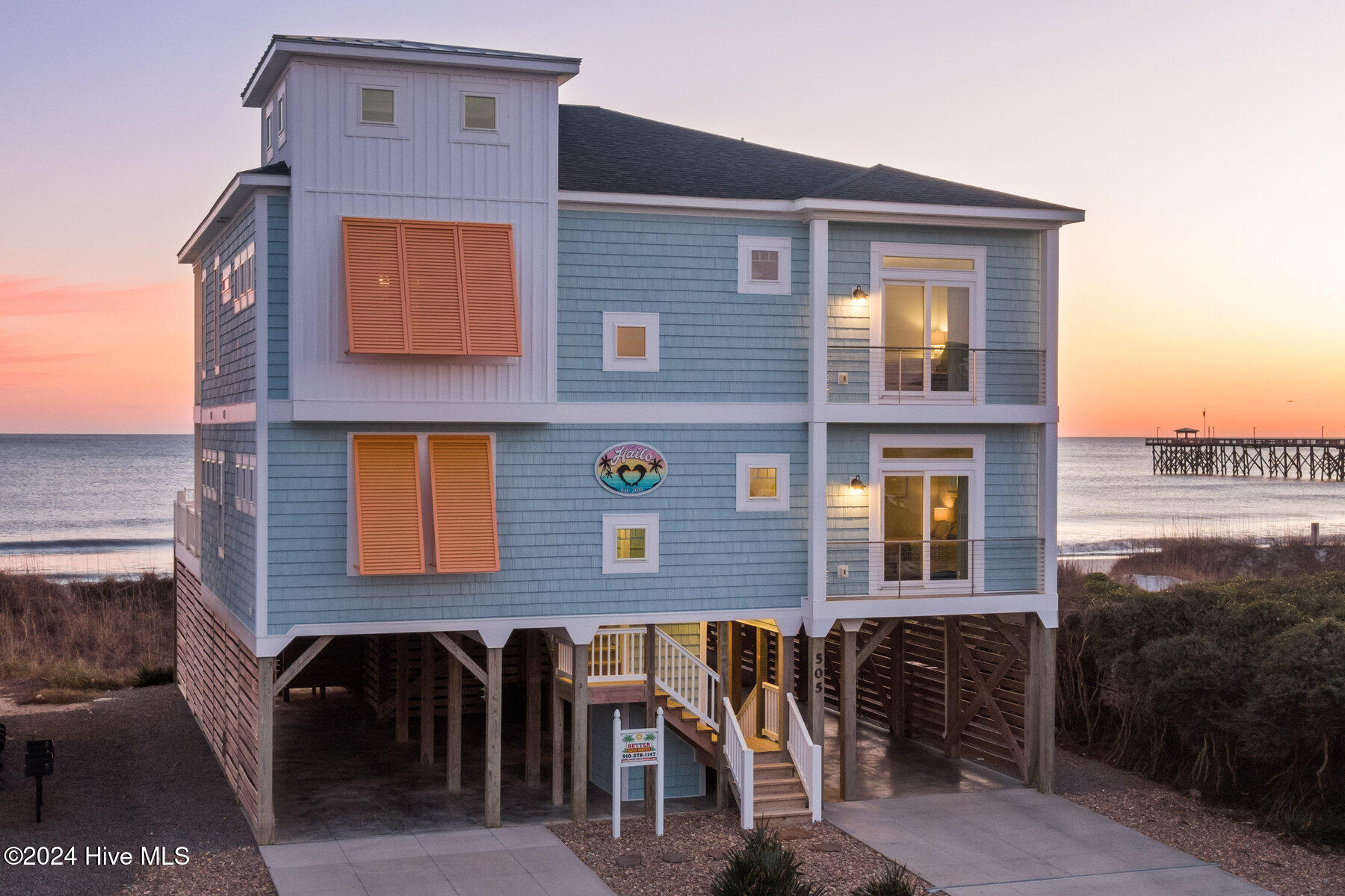 Welcome to 505 Ocean Drive, a stunning 7-bedroom, 6.5-bathroom oceanfront home is nestled in a prime location in the ''Old Yaupon'' area of Oak Island. Built in 2019, this home boasts modern architecture and stylish interiors, seamlessly blending comfort and sophistication for the ultimate coastal retreat. With contemporary design and luxurious amenities, this property offers an unparalleled coastal living experience. With seven spacious bedrooms, including five with their own bathrooms, this home offers plenty of space for family and guests to unwind in comfort and privacy. Enjoy breathtaking views of the Atlantic Ocean right from your doorstep. Step out onto the pristine sandy beach for a morning stroll or soak in stunning sunsets from the comfort of your own home. Relax and rejuvenate in the heated pool, perfect for year-round enjoyment. Whether you're looking to cool off on a hot summer day or take a refreshing dip in the cooler months, the elevated pool offers endless opportunities for relaxation and recreation. Accessibility is key in this thoughtfully designed home. The inclusion of an elevator ensures that all occupants, regardless of mobility, can easily access every floor with ease and comfort. Convenience is paramount with two sets of washer and dryers--one upstairs and one downstairs--making laundry day a breeze for residents and guests alike. This home is currently on a vacation rental program with established annual income! Schedule a showing today!