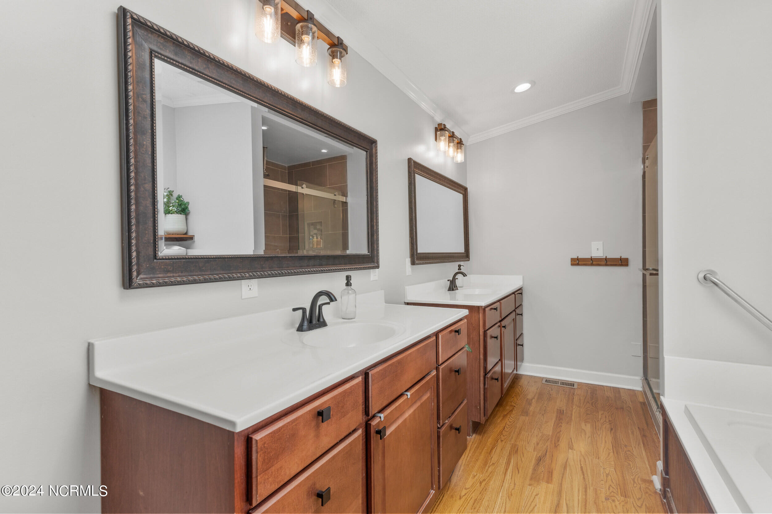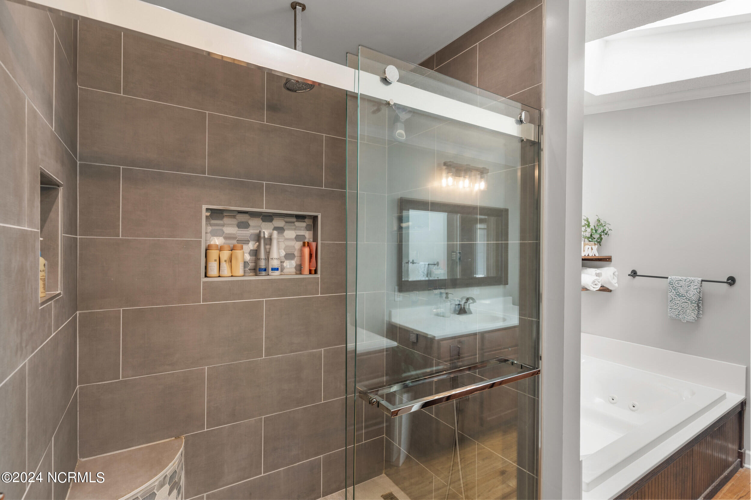 Step inside and discover not one, but two master bedrooms, each with its own en-suite bath, providing ample privacy and luxury. The home's roof was recently updated in 2023, complete with brand new skylights that fill the interior with natural light. Beneath the home, the crawl space has been professionally encapsulated with a sump pump and dehumidifier installed in 2023, ensuring a dry and healthy environment year-round.