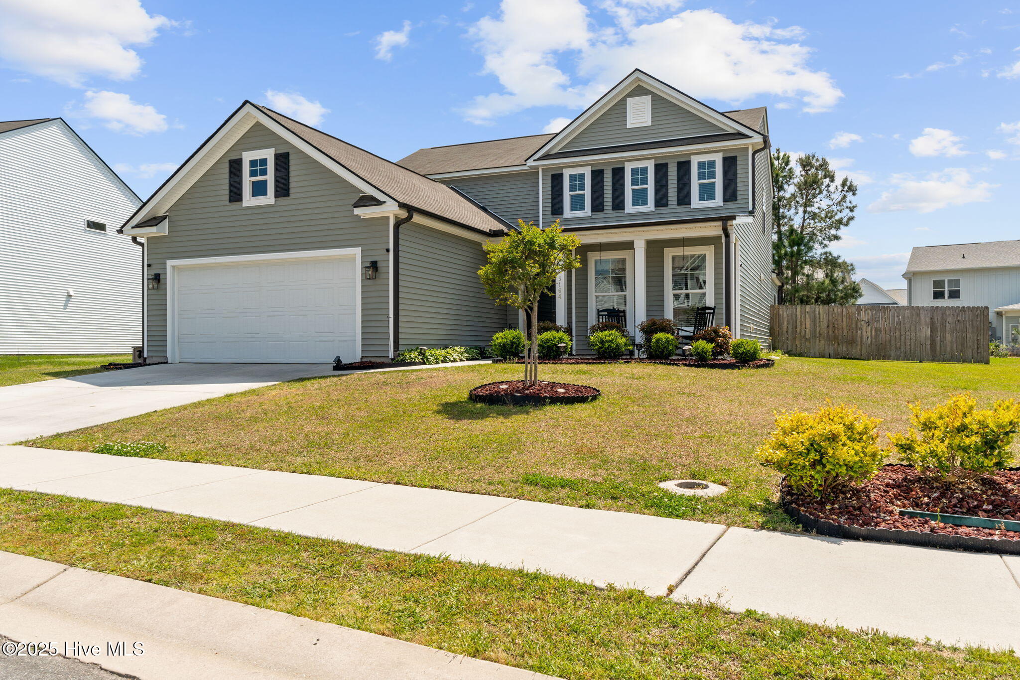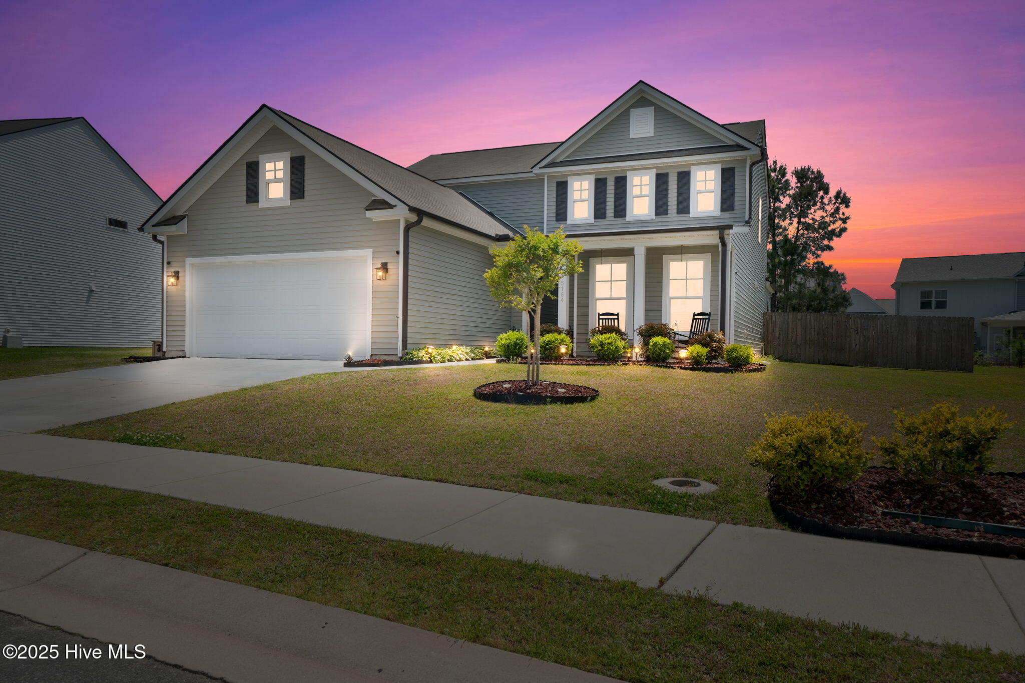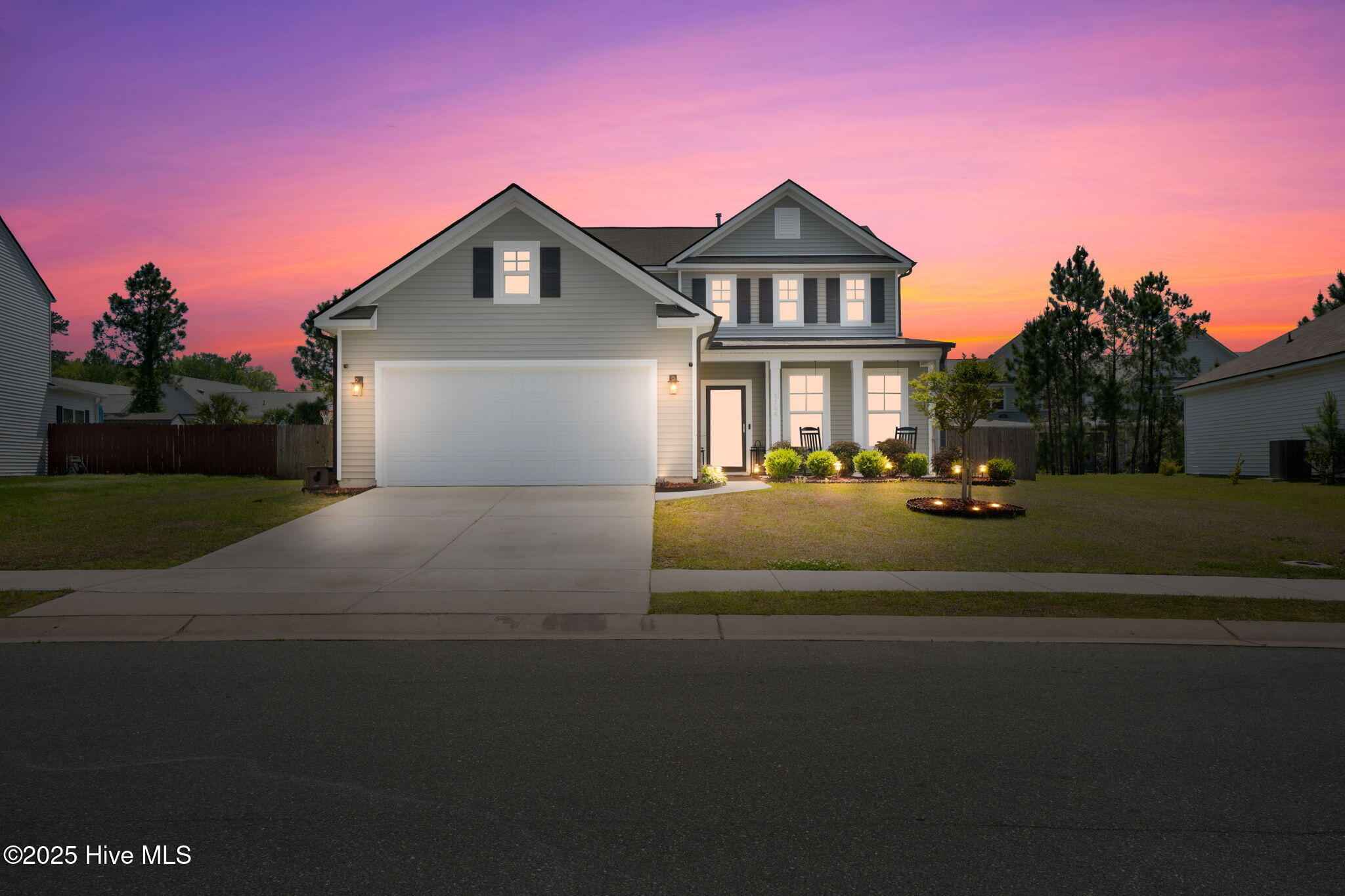 This elegant two-story home boasts a first-floor master suite and impresses with its design and location. Enjoy the spacious oversized gathering room, complete with a stunning sunroom flooded with natural light. Upstairs, discover two additional bedrooms and a versatile loft area (could easily be 4th bedroom), perfect for a playroom or home office. The neighborhood features natural gas, a refreshing community pool, and a nearby park. Plus, Leland is experiencing vibrant new development, boasting a growing culinary scene and a diverse shopping experience. Residents enjoy convenient access to Wilmington, Brunswick County beaches, and are just a short 15-20 minute drive to ILM airport, with easy access to Myrtle Beach, which is only an hour away.