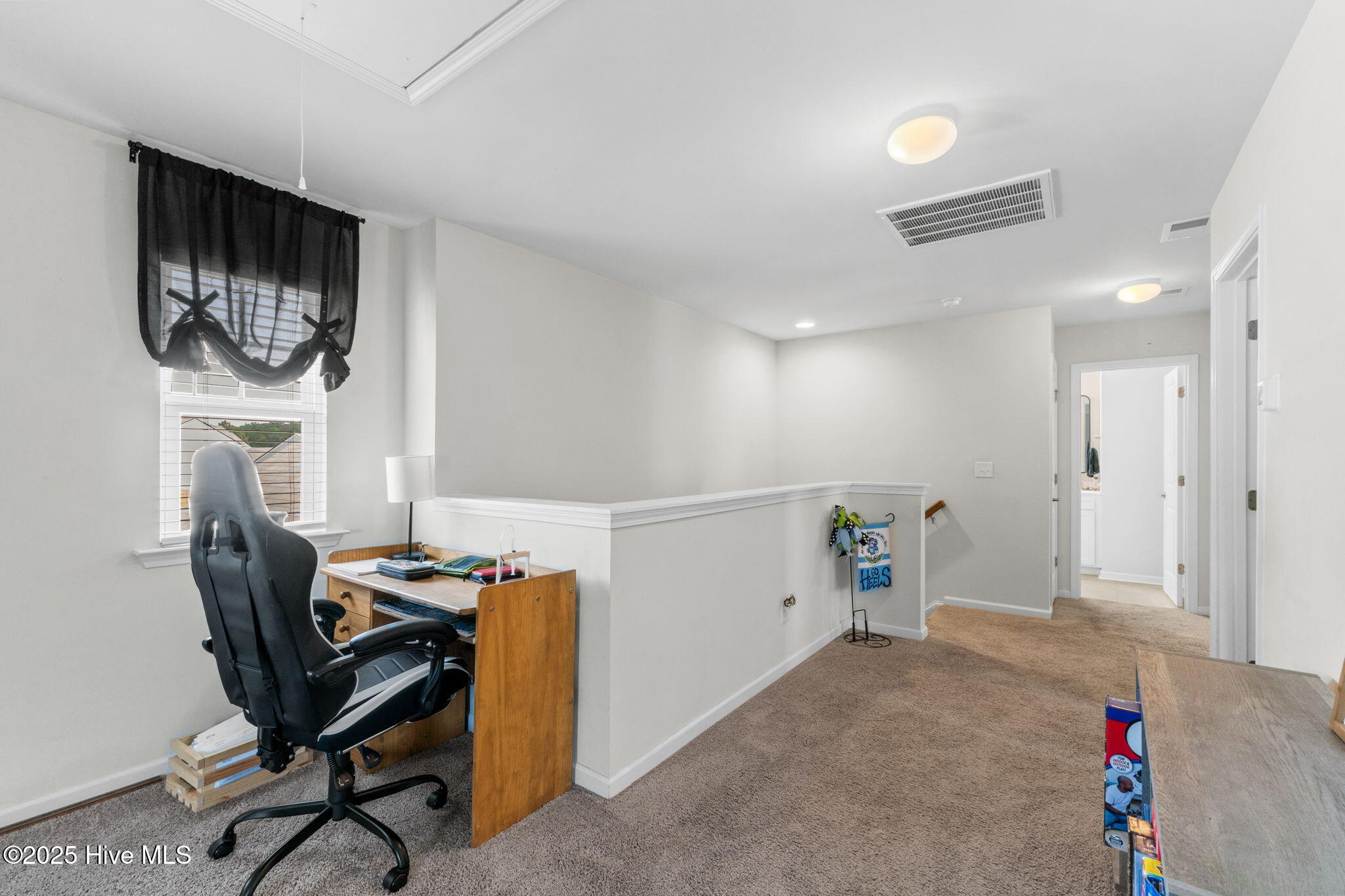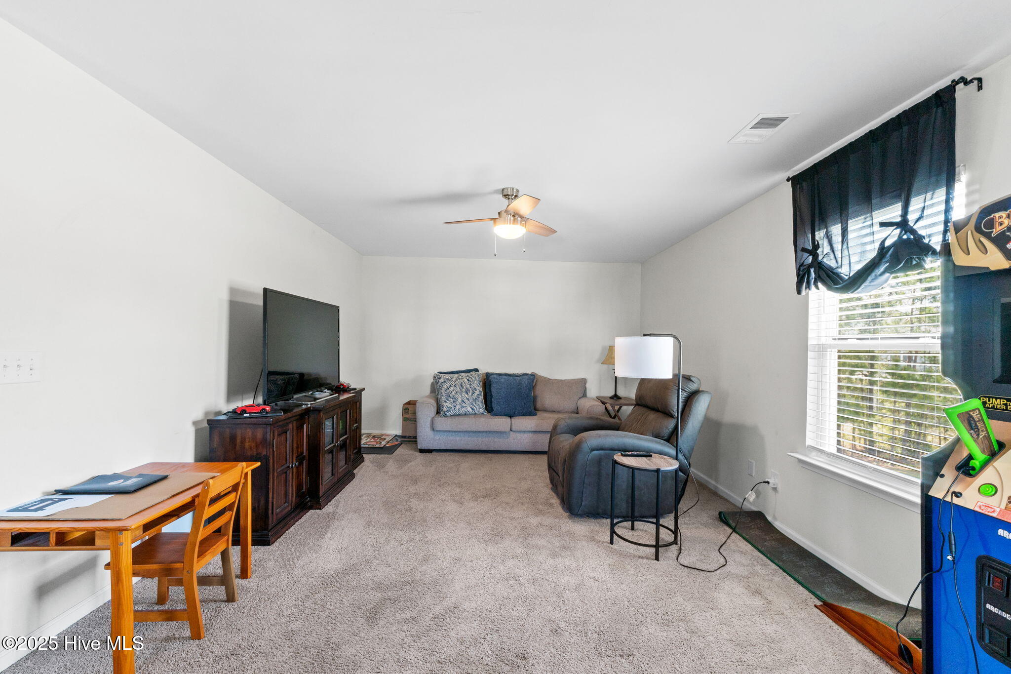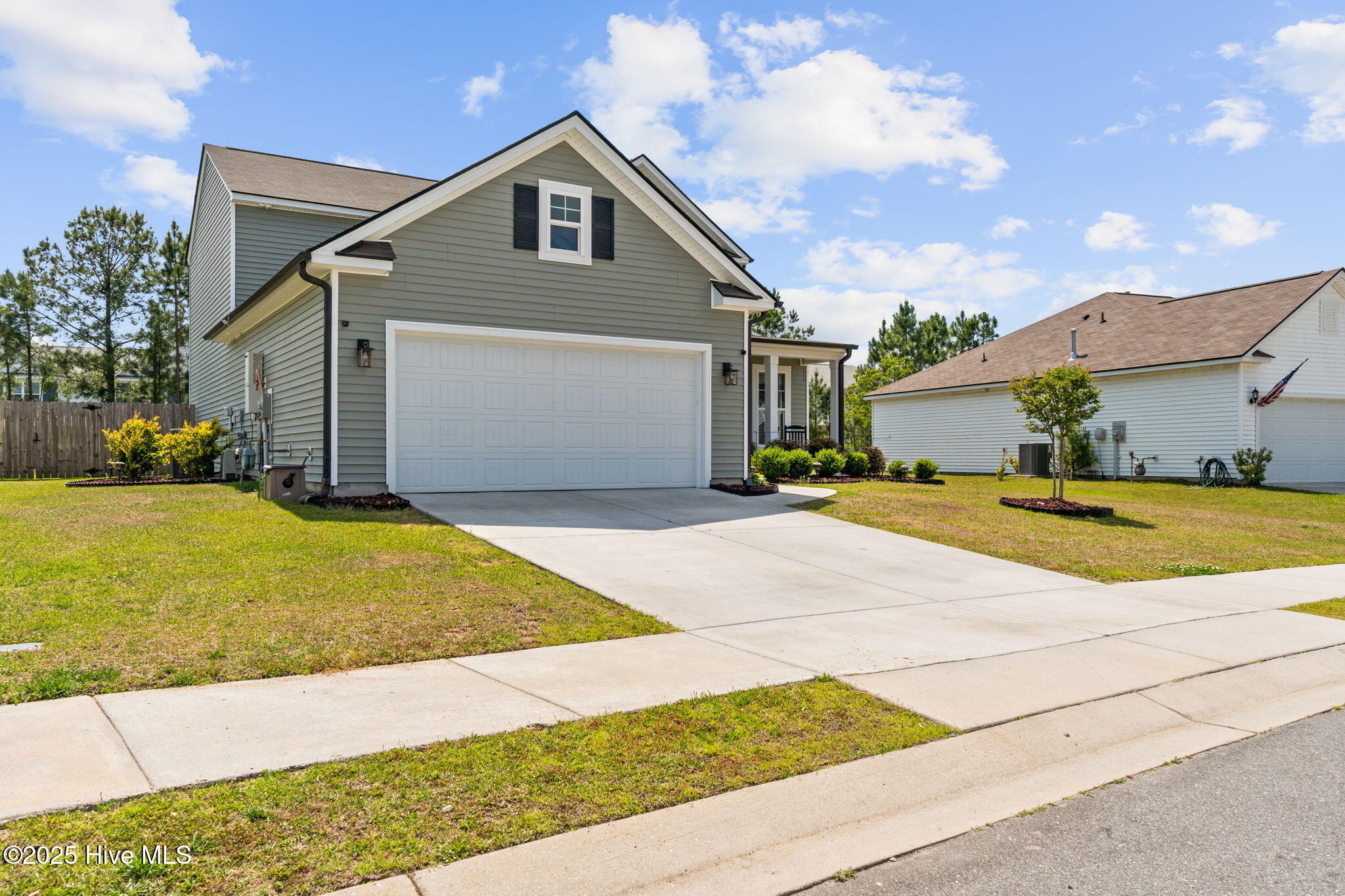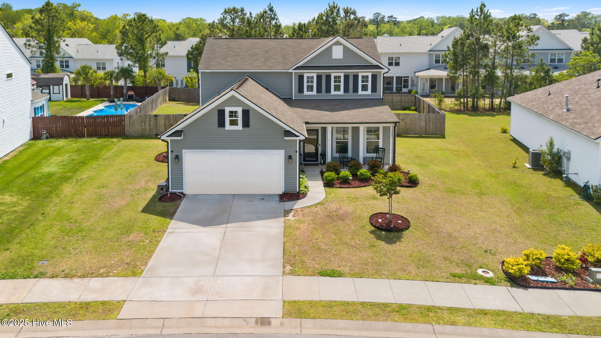 This elegant two-story home boasts a first-floor master suite and impresses with its design and location. Enjoy the spacious oversized gathering room, complete with a stunning sunroom flooded with natural light. Upstairs, discover two additional bedrooms and a versatile loft area (could easily be 4th bedroom), perfect for a playroom or home office. The neighborhood features natural gas, a refreshing community pool, and a nearby park. Plus, Leland is experiencing vibrant new development, boasting a growing culinary scene and a diverse shopping experience. Residents enjoy convenient access to Wilmington, Brunswick County beaches, and are just a short 15-20 minute drive to ILM airport, with easy access to Myrtle Beach, which is only an hour away.