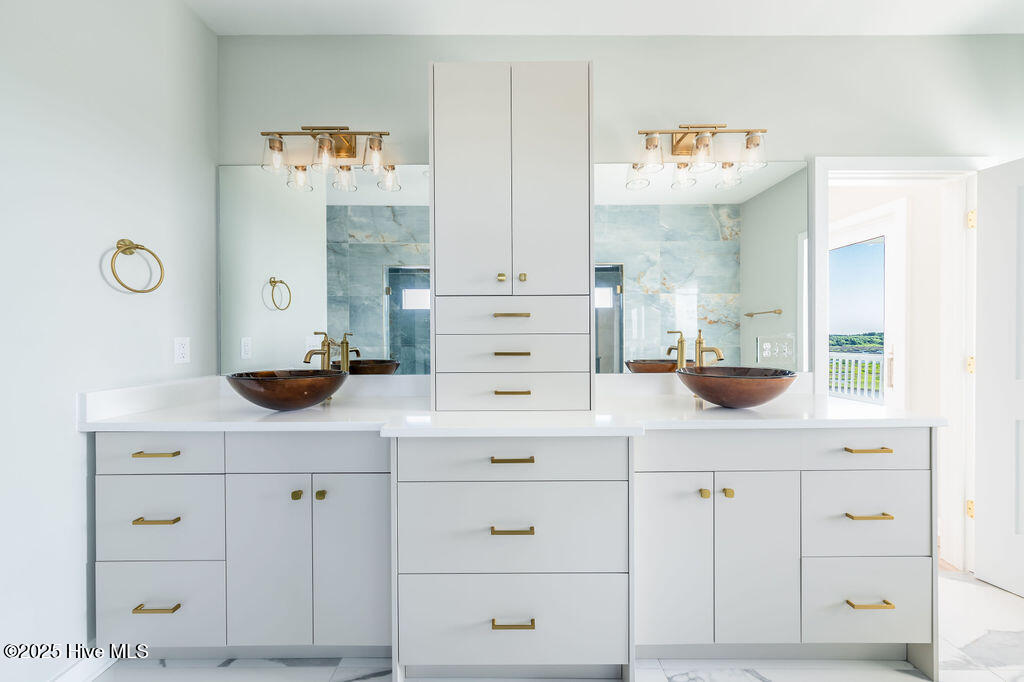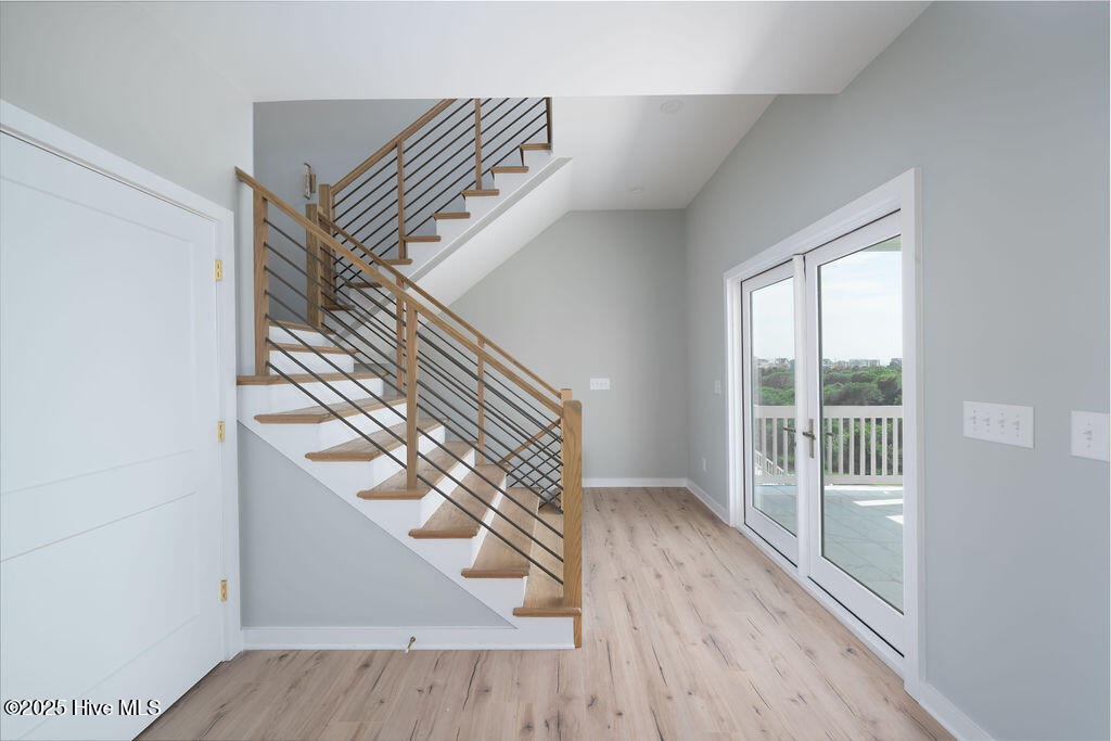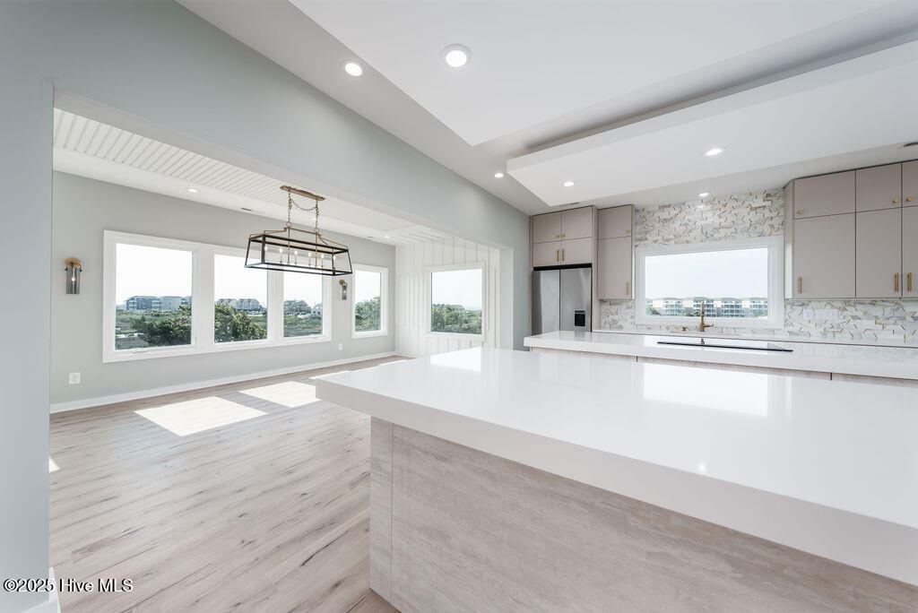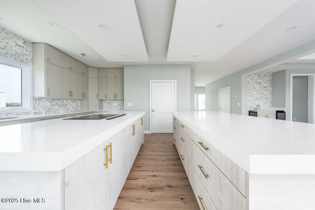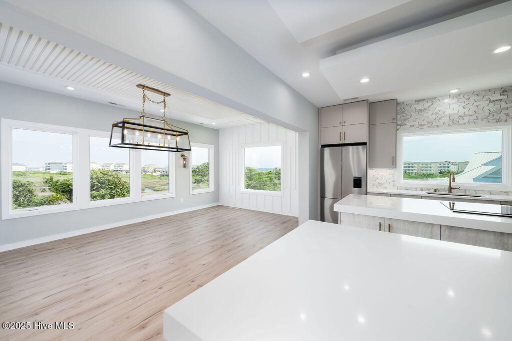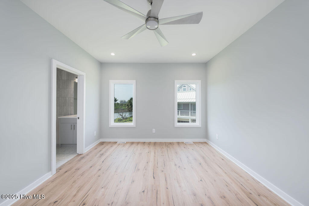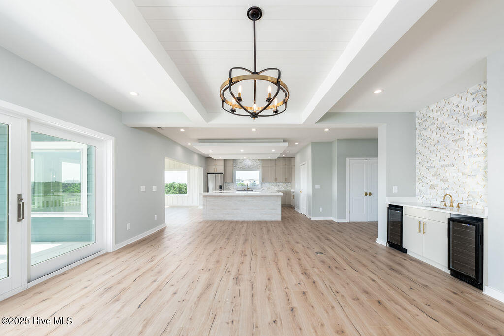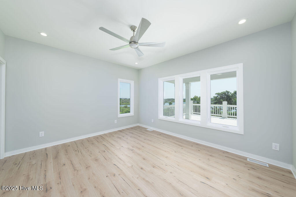 Welcome to your dream home in the pristine neighborhood of Cape Island, North Topsail Beach! This stunning 5-bedroom residence featuring 3 full baths and 2 half baths sits on a large waterfront lot, offering unparalleled views and tranquility. As you step inside, you'll be captivated by the luxurious finishes and thoughtful design.The chef's kitchen is a culinary enthusiast's dream, with quartz countertops, high-end appliances, and soft-close cabinets. The open floor plan seamlessly connects the main living areas, all adorned with waterproof engineered floors, ensuring both style and durability, and a linear electric fireplace adds a touch of modern elegance. Bathrooms are elegantly designed with beautiful tile flooring. Expansive outdoor covered porches with tile flooring provide the perfect space for entertaining or simply relaxing while taking in the serene water views. Large windows throughout the home flood the space with natural light, creating a warm and inviting atmosphere. The primary suite is a true sanctuary, occupying the entire top floor for ultimate privacy and comfort. Enjoy the spacious layout and luxurious amenities--a perfect retreat after a long day. Constructed with hardie siding, this home is built to last. For added convenience, the house features an elevator and three separate heat pump units for optimal climate control. Cape Island is a vibrant community with amenities that include a clubhouse and a community pool. And when you're ready to feel the sand between your toes, take a leisurely stroll to the beach using the community's private beach access. Don't miss the opportunity to own this exceptional coastal home in Cape Island. Schedule your private tour today and experience the best of North Topsail Beach living!