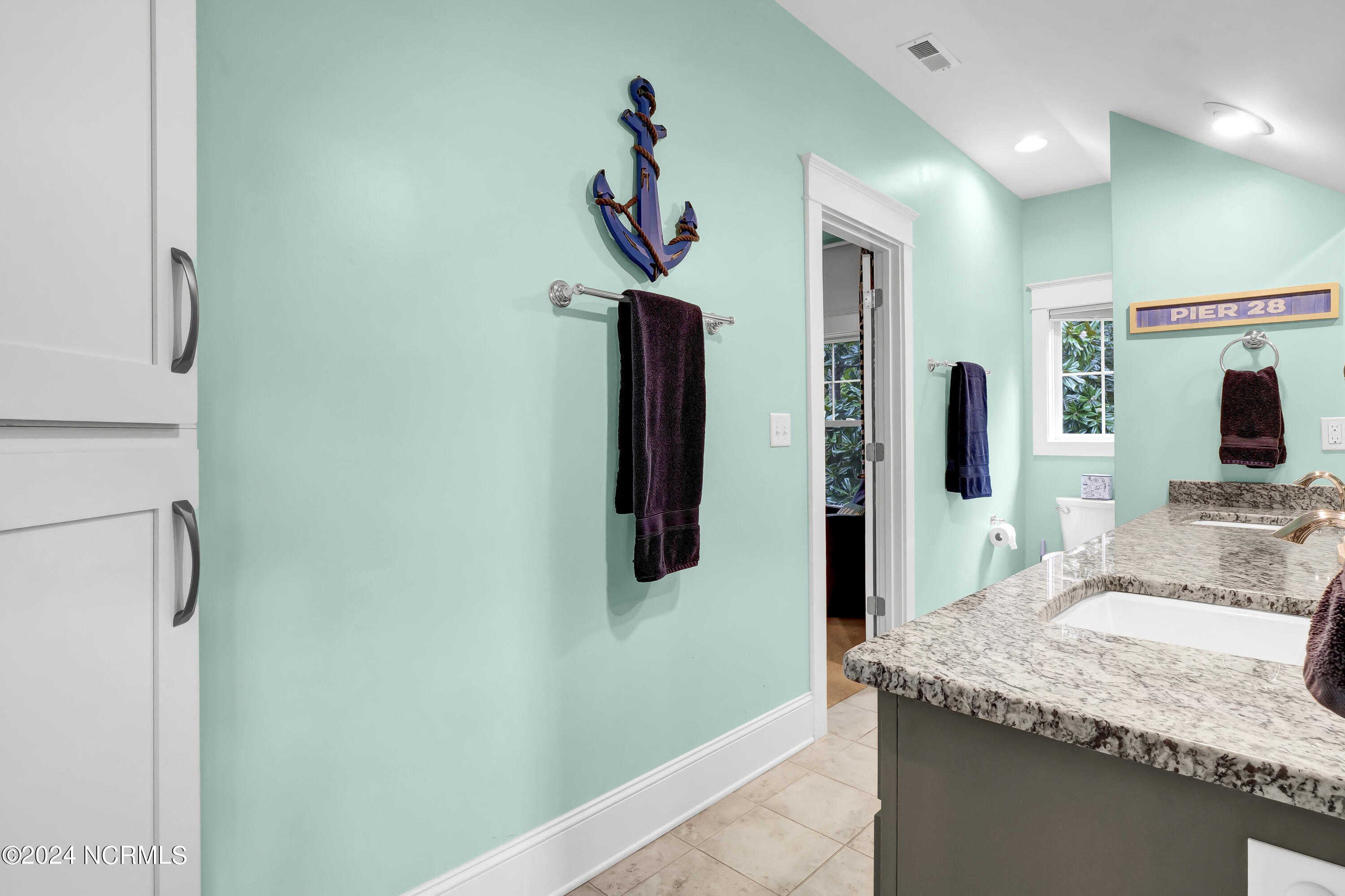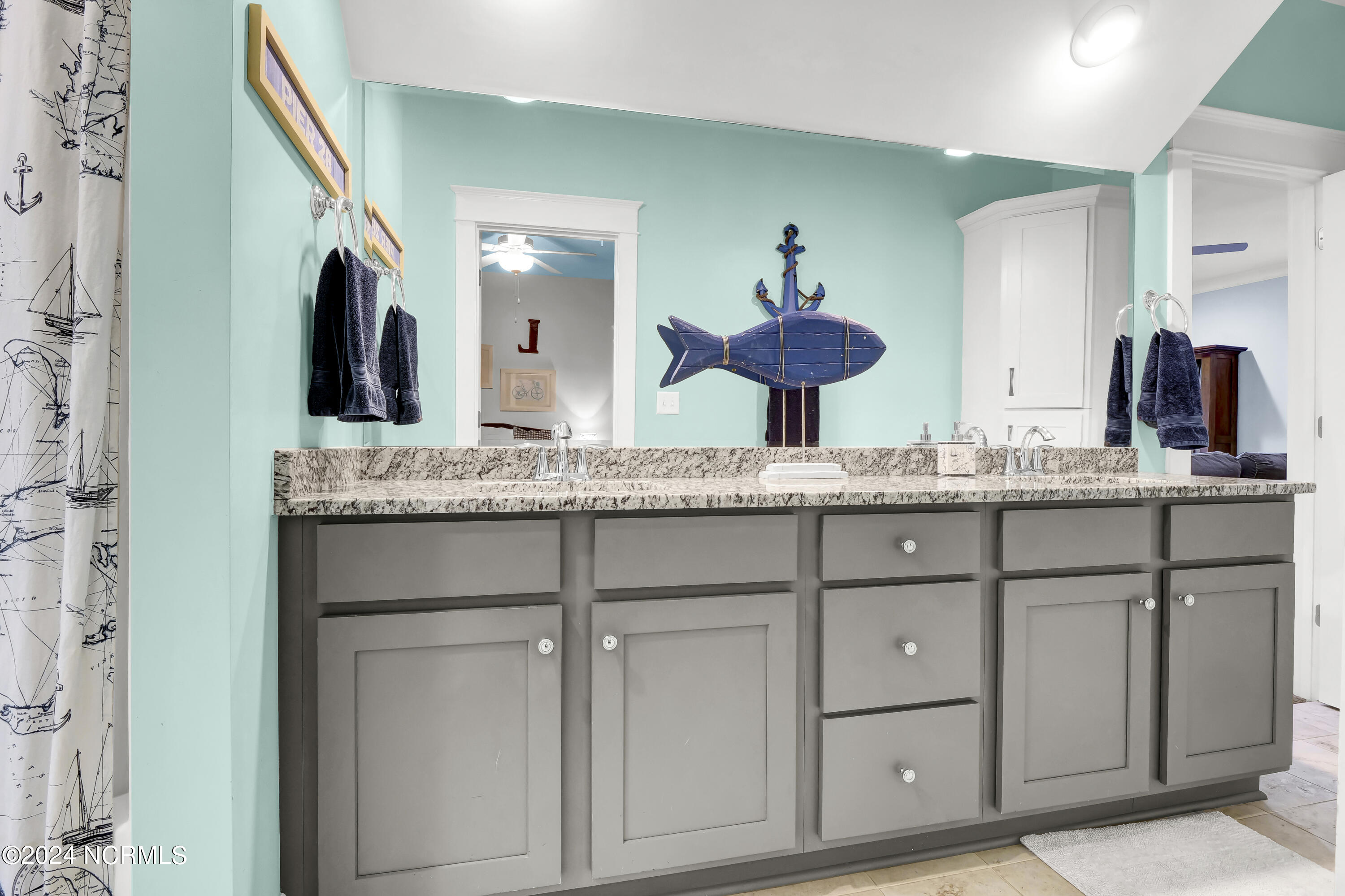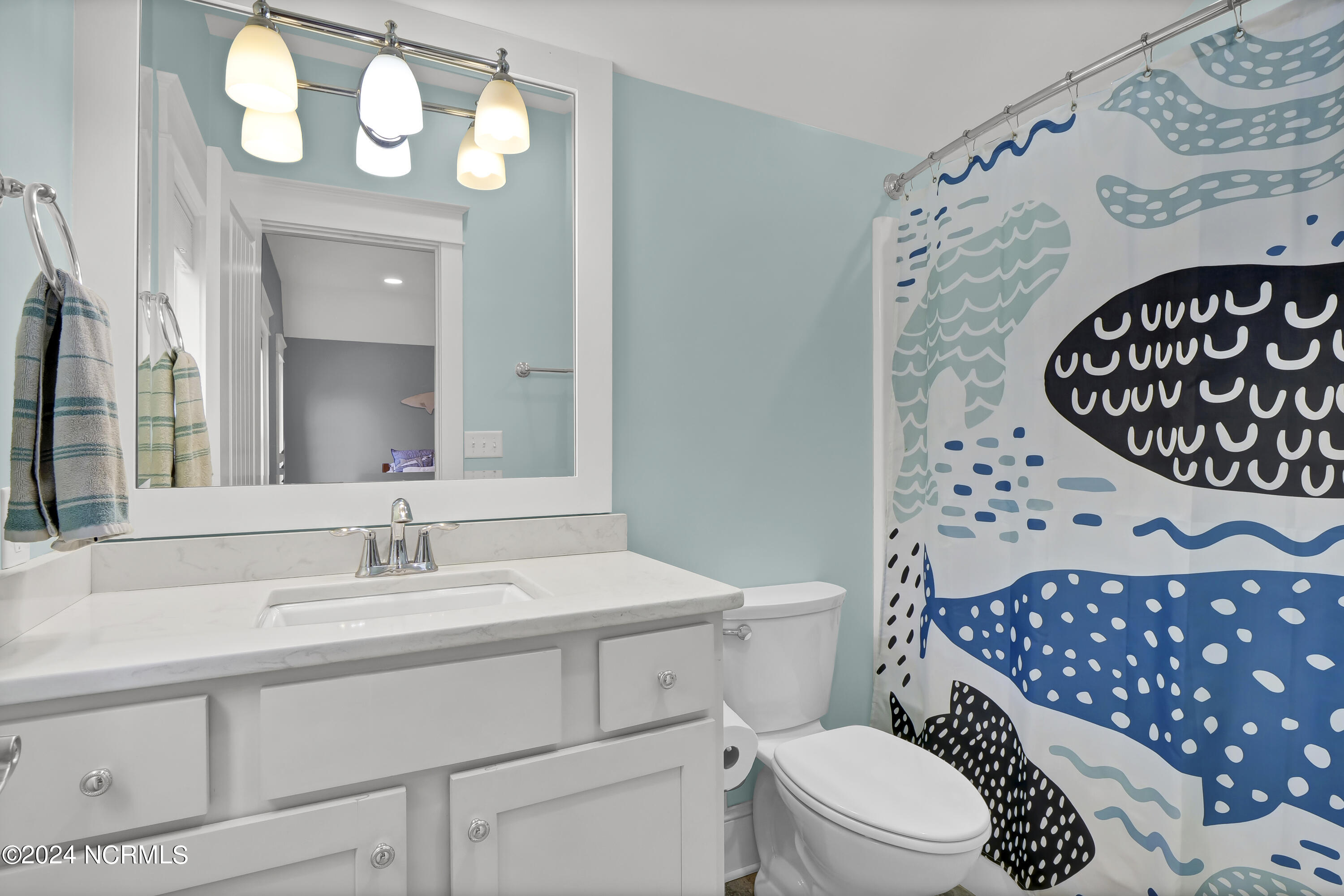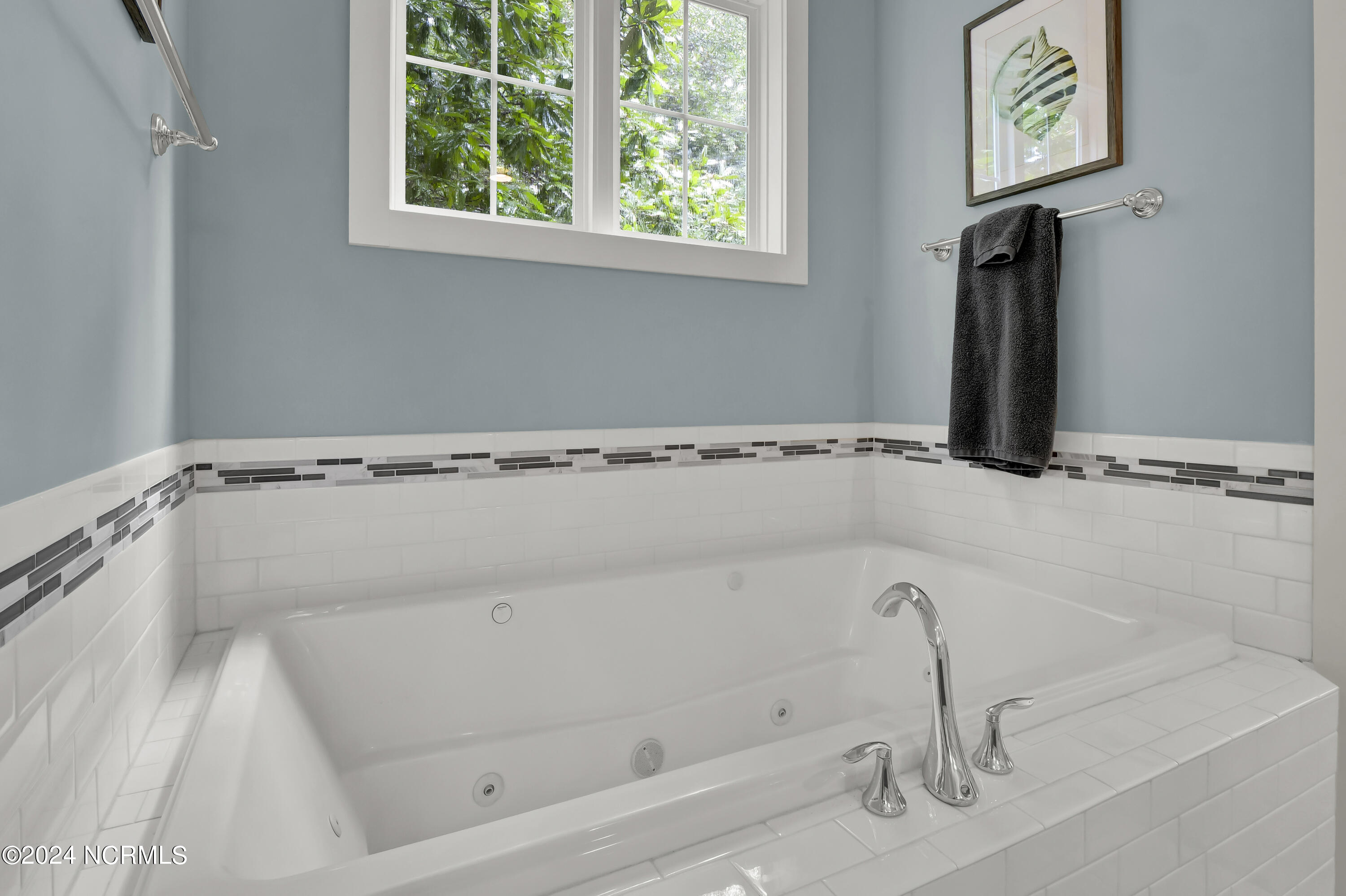 This stunning property boasts three levels of decks and porches, including a screened-in porch perfect for enjoying the coastal breeze. The master bathroom is a true retreat, featuring a luxurious jet tub ideal for relaxing soaks or bathing multiple children.