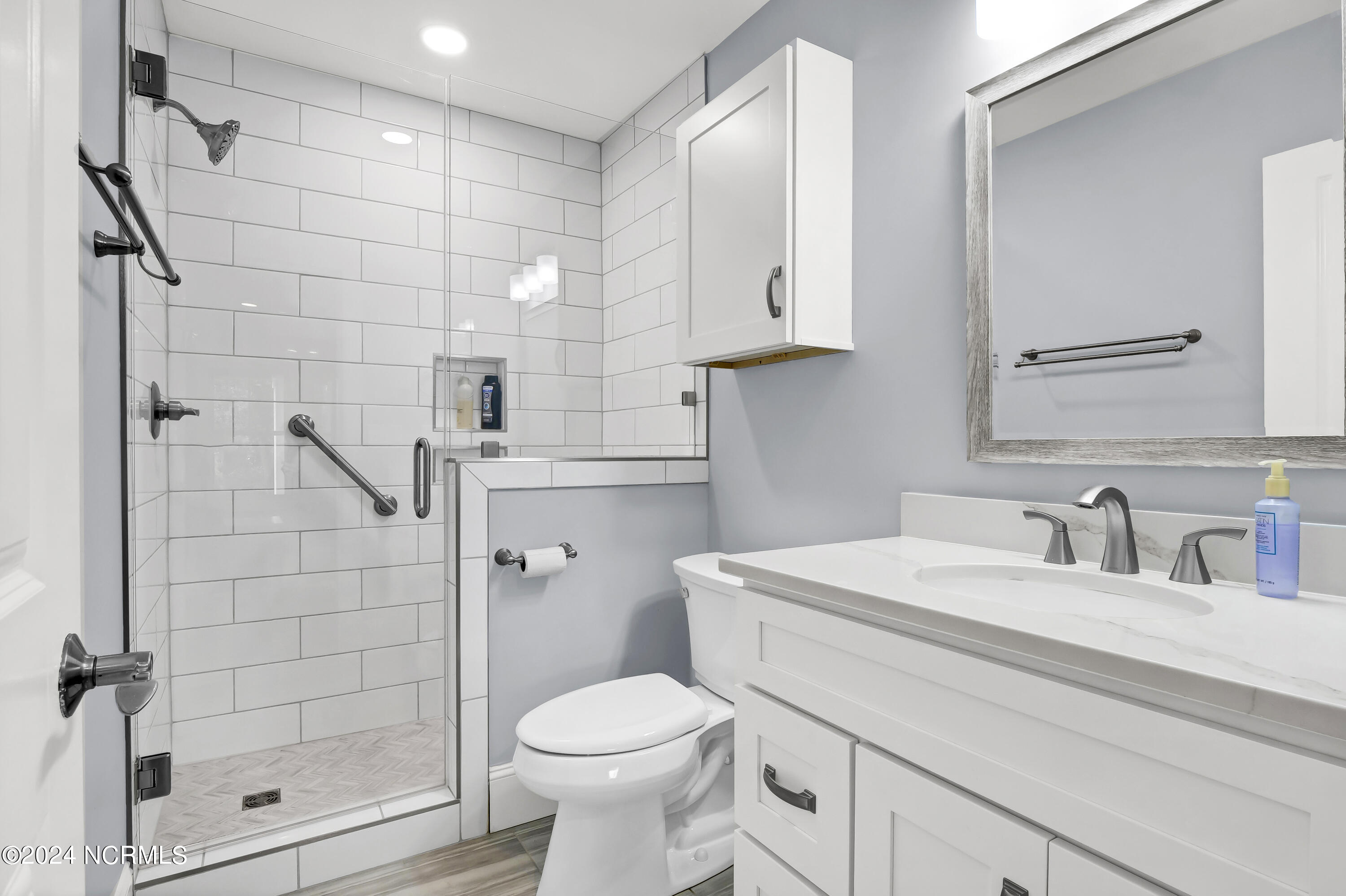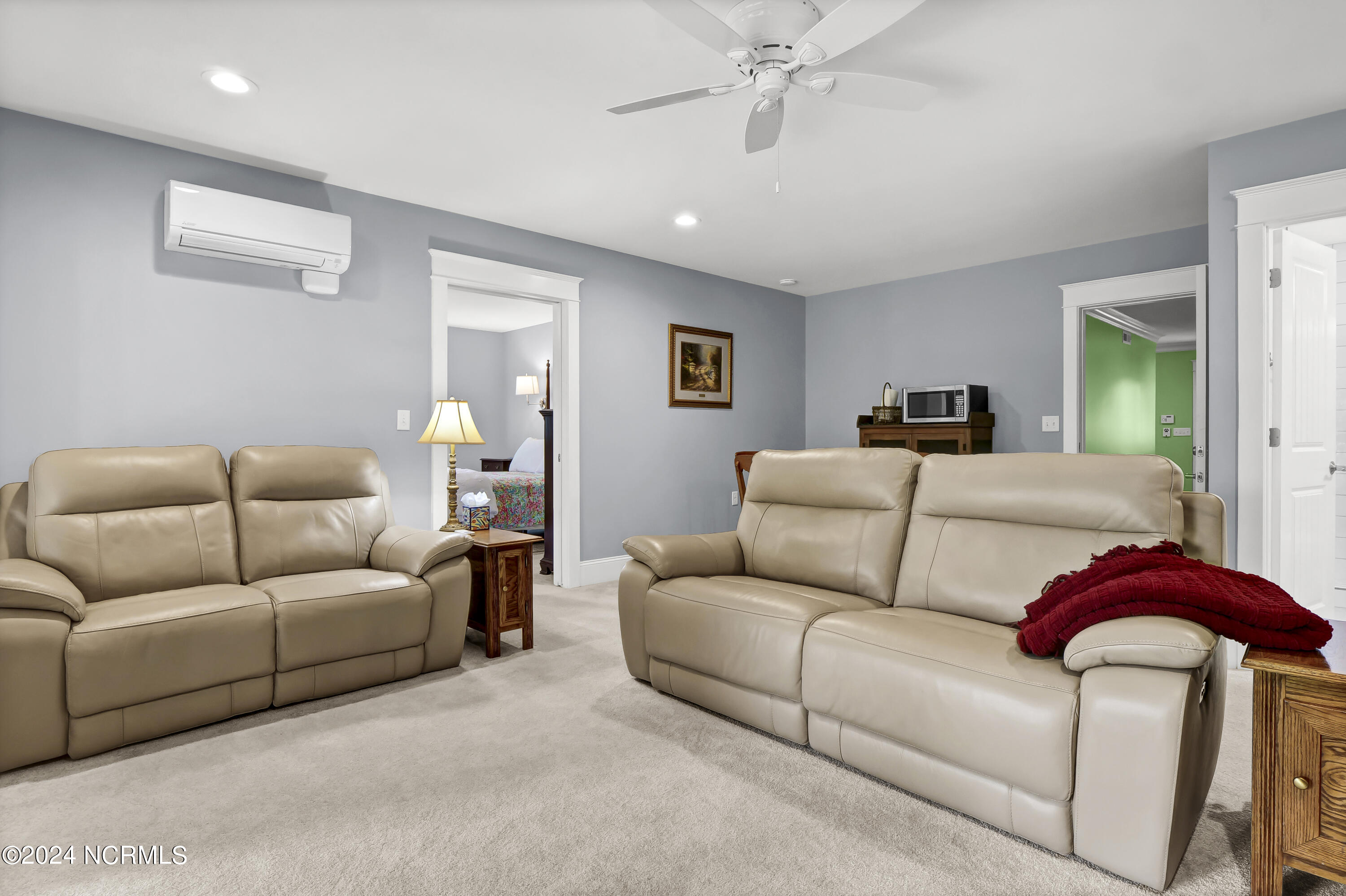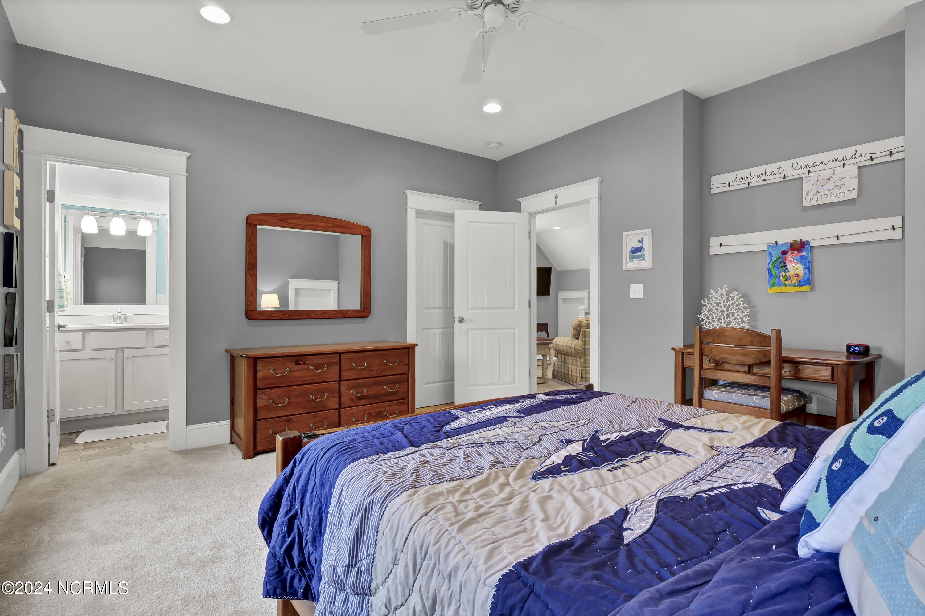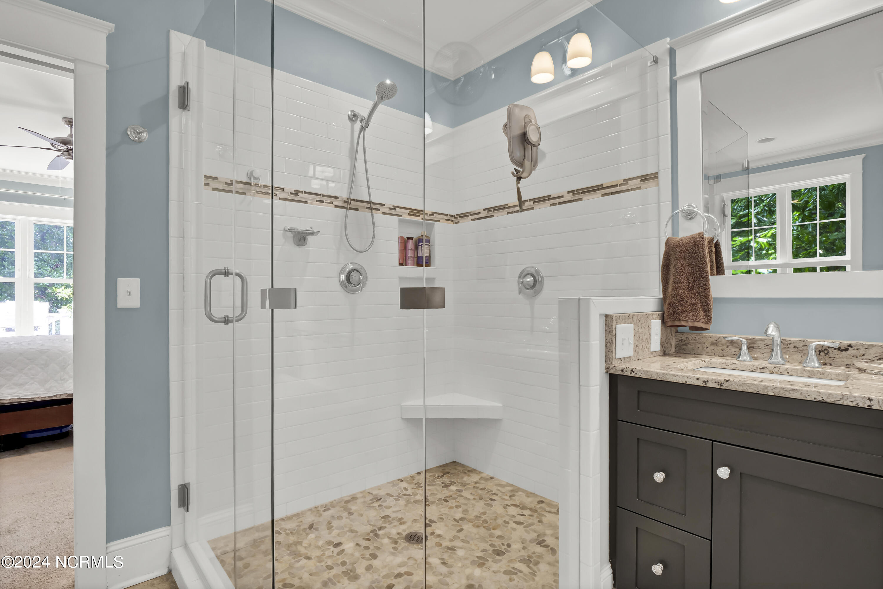 This stunning property boasts three levels of decks and porches, including a screened-in porch perfect for enjoying the coastal breeze. The master bathroom is a true retreat, featuring a luxurious jet tub ideal for relaxing soaks or bathing multiple children.