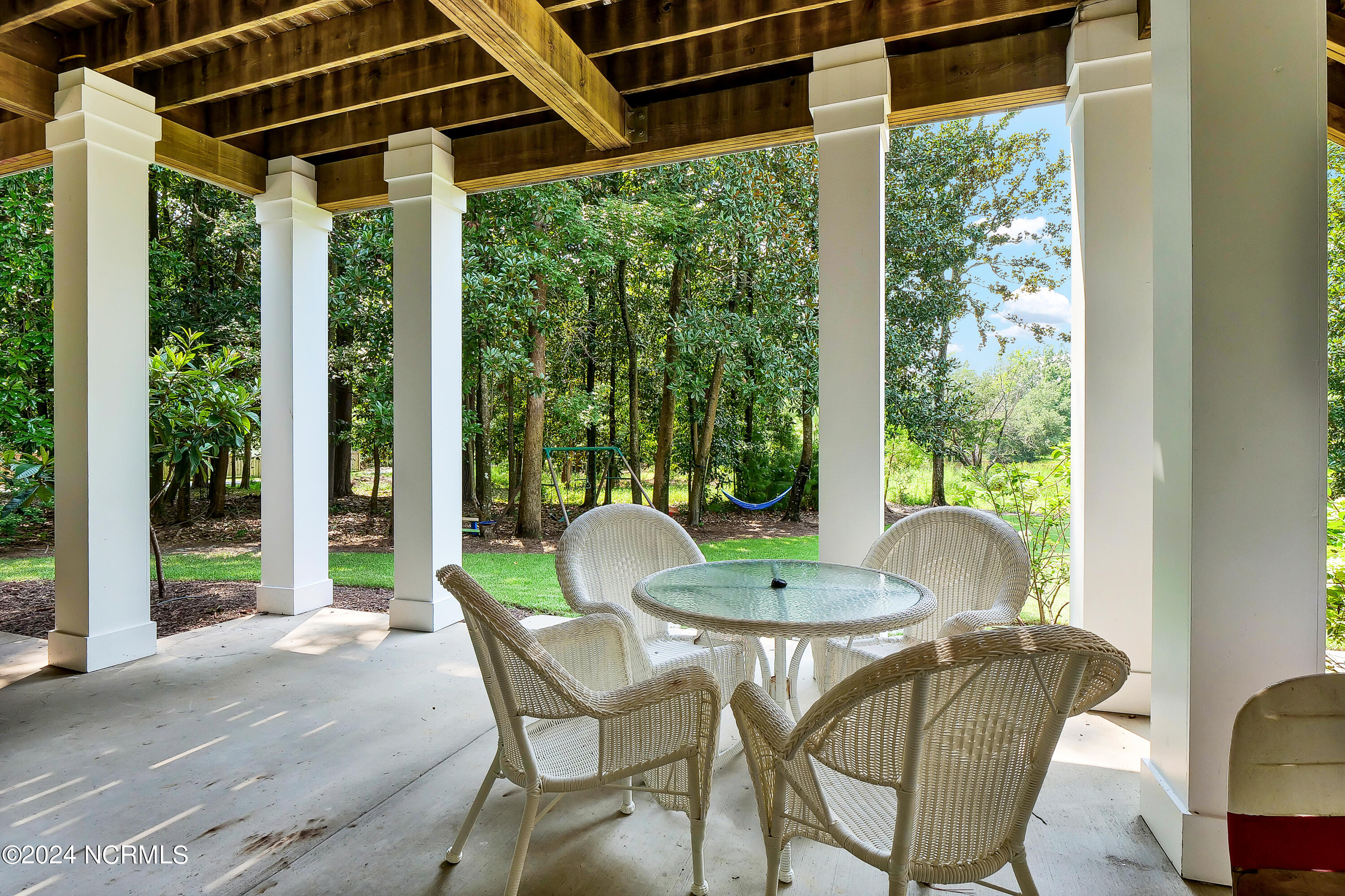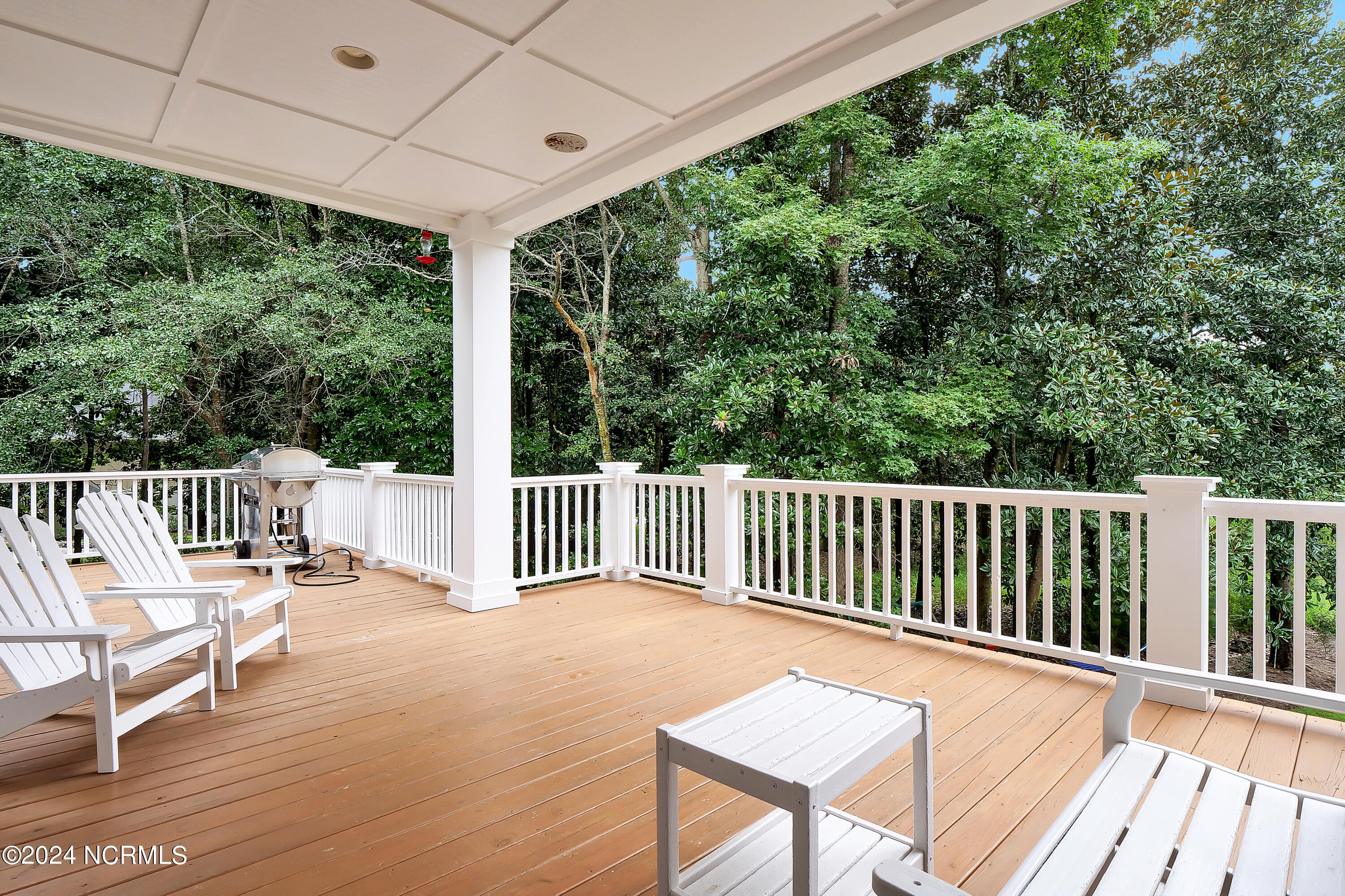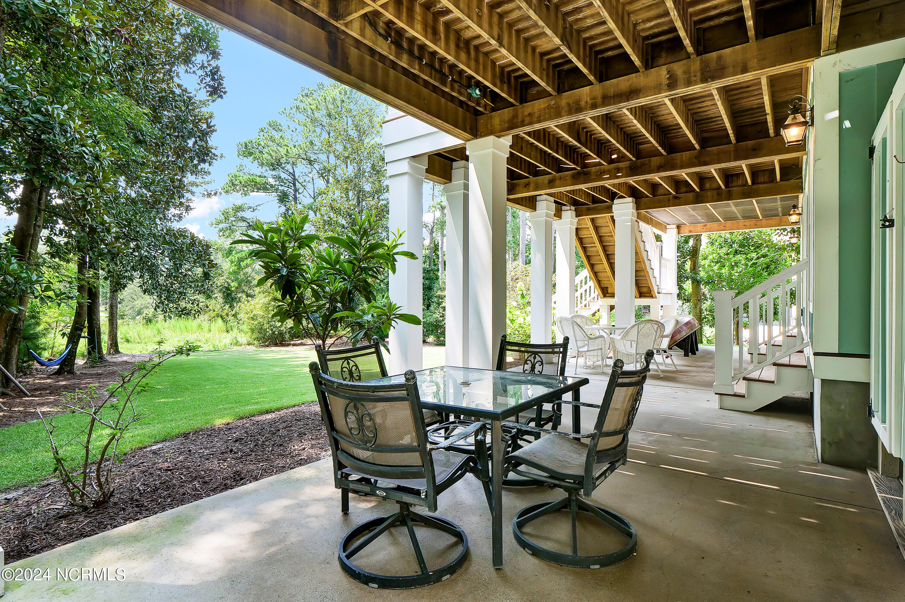 The picturesque views from the back deck include sightings of egrets, herons, and various other coastal birds and wildlife. The backyard overlooks a marsh pond connected to Pages Creek, where up to 30 egrets can be seen feeding at times.
