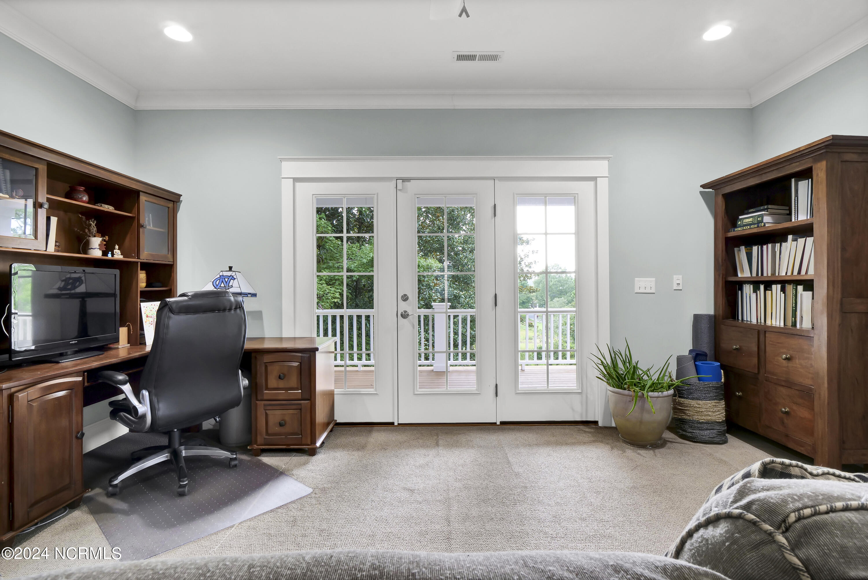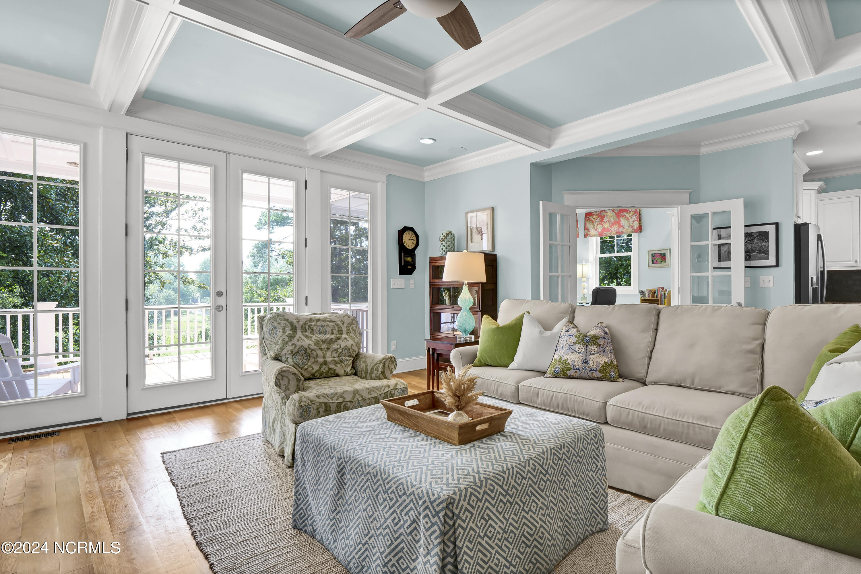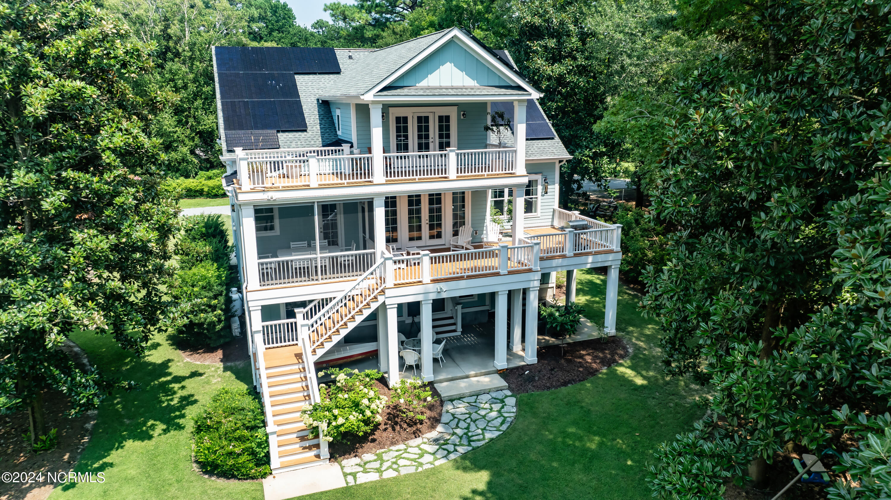 The picturesque views from the back deck include sightings of egrets, herons, and various other coastal birds and wildlife. The backyard overlooks a marsh pond connected to Pages Creek, where up to 30 egrets can be seen feeding at times.