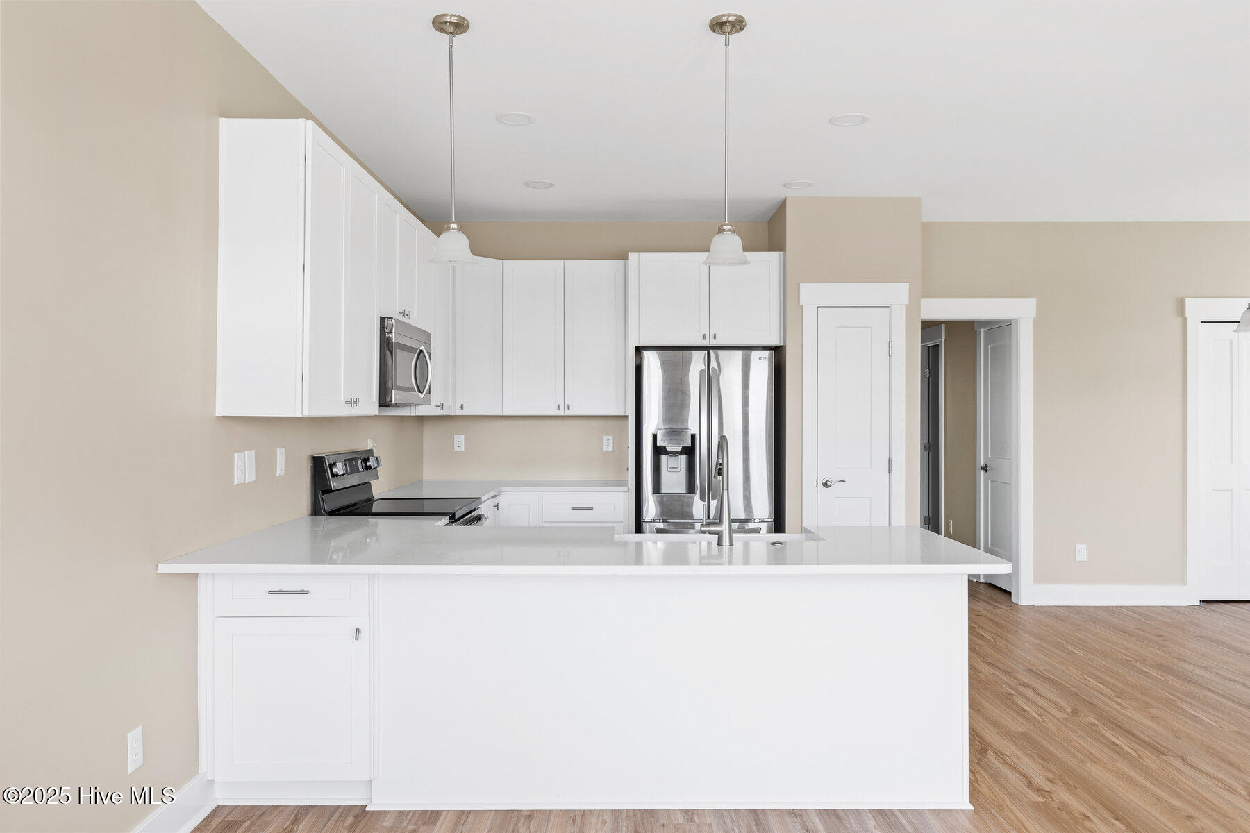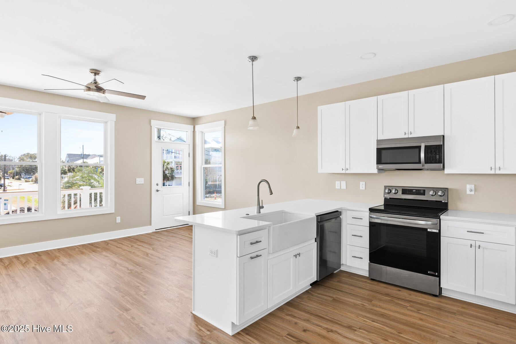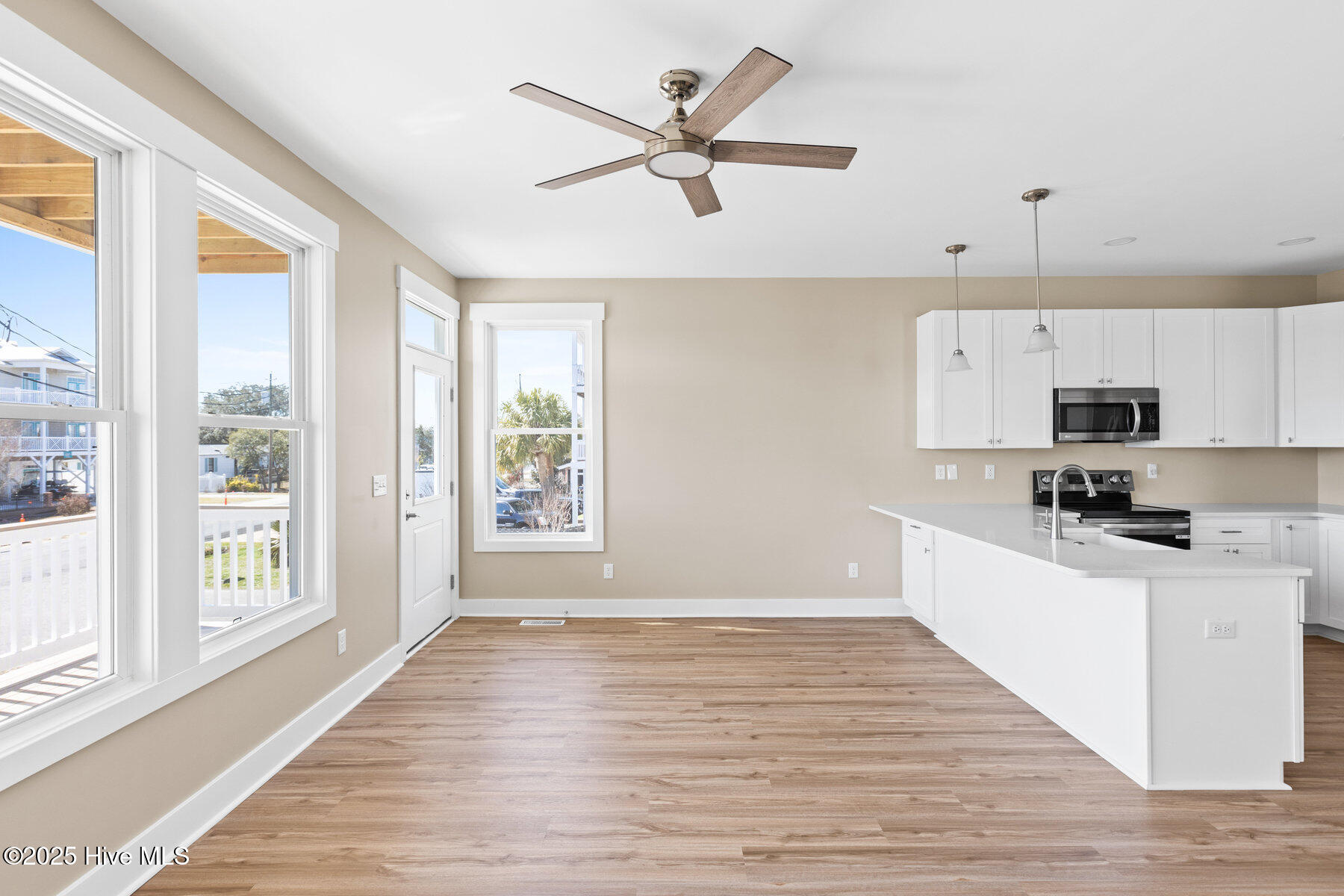 Welcome to Carolina Beach! Step inside this almost-new condo, filled with natural light and an airy coastal vibe. The open floor plan seamlessly connects the kitchen, living, and dining areas, creating a bright and inviting space. Down the hallway, you'll find a guest bathroom and two guest bedrooms before reaching the master suite, complete with its own en-suite bathroom.