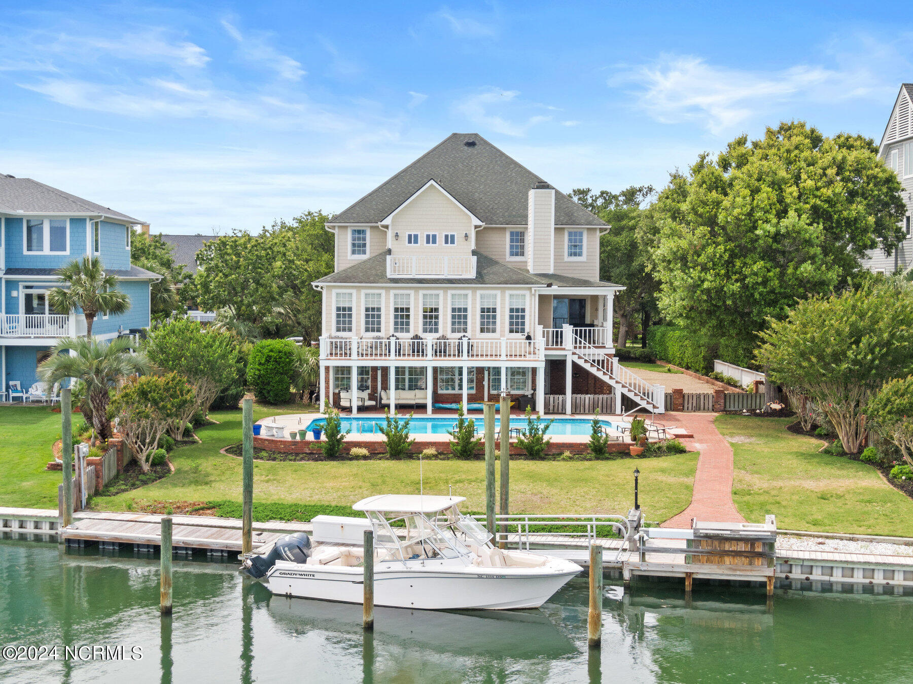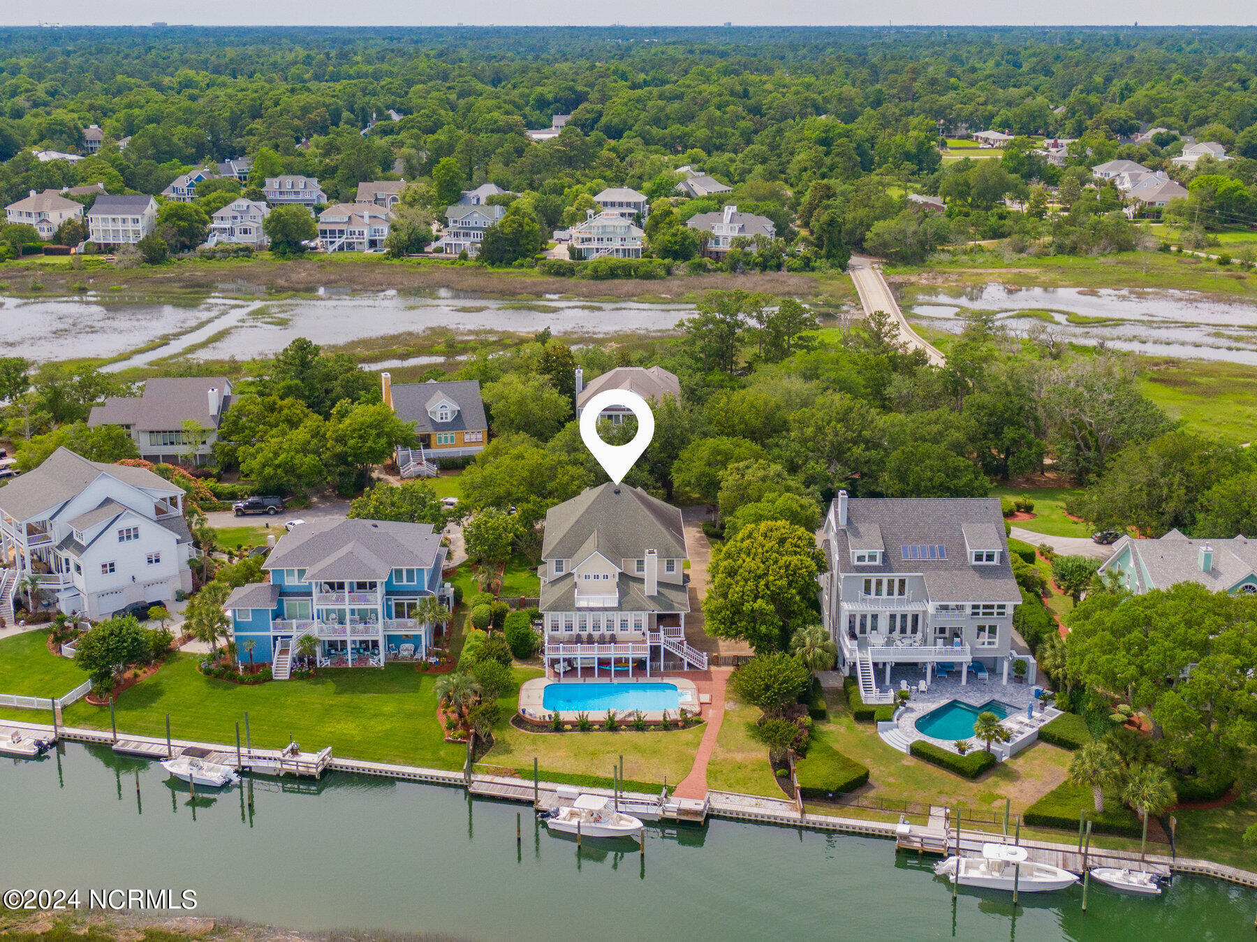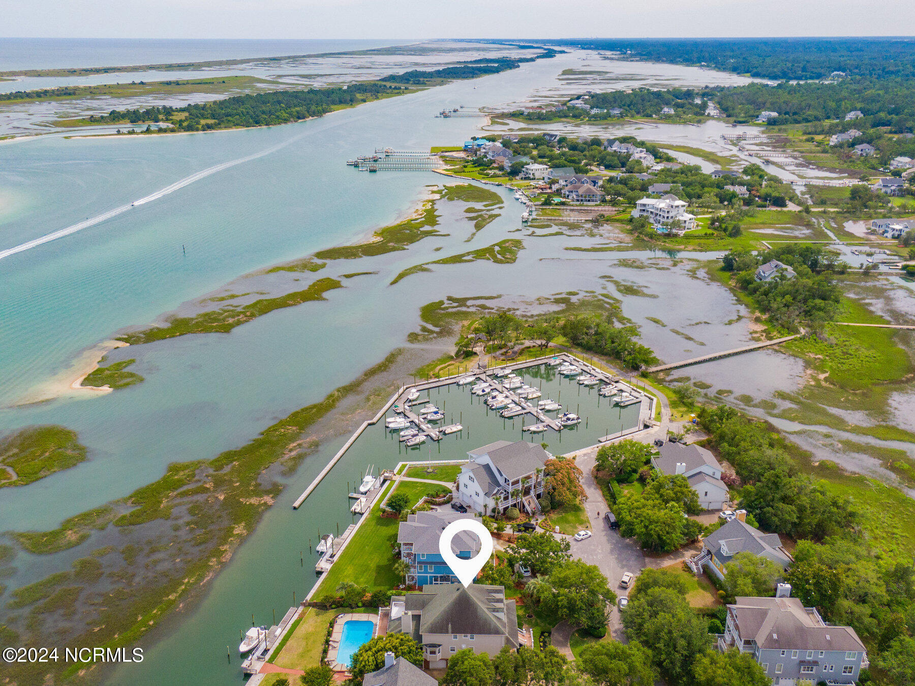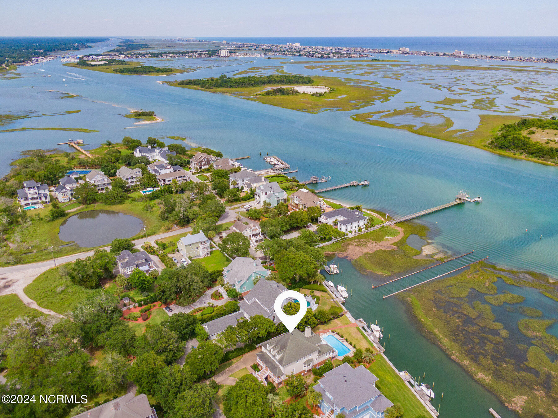 This waterfront home is situated on a serene island enclave with only eight neighboring properties within highly desirable Turtle Hall. The expansive residence spans over 6200 square feet and features a waterfront pool area, six bedrooms, a generous game room, four-car garage, and spacious porches. Enjoy panoramic views that sweep from the Intracoastal Waterway to scenic Wrightsville Beach and beyond. Boating enthusiasts will delight in the private dock that is shielded from passing wakes and is just a short boat ride from Masonboro Inlet. Lounge by the pool and enjoy the tranquil sight of boats gliding past. This home has been meticulously cared for over the years. A rare offering of an extraordinary island escape that offers a perfect balance of seclusion and convenience to all the best of Wilmington.