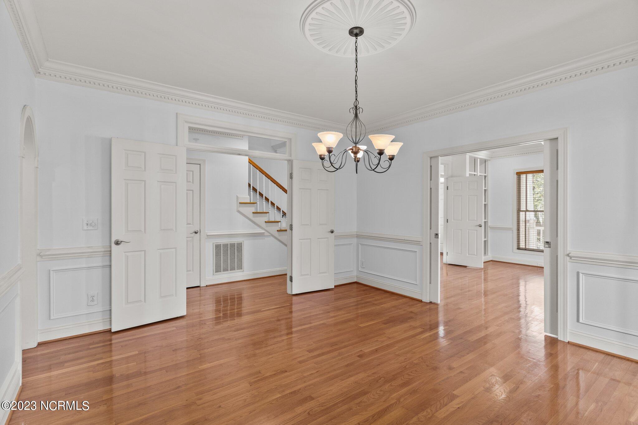 Extraordinary long-term rental opportunity tucked away in the quiet and unique waterfront community of Demarest Landing in Wilmington, NC. This three-level custom built residence showcases 4,413 SqFt of unmatched beauty and classic detail throughout--from its beautiful hardwood floors, 9-foot ceilings and crown molding, to it's wide wrap around front porch, making this home a true gem in a coveted location. Set on a cul-de-sac, this beautiful wooden lot is surrounded by an abundance of trees and foliage. This pet-friendly home boasts four spacious bedrooms and four bathrooms. Located on the first floor is an updated eat-in kitchen that opens to a family room with a wood burning fireplace, leading to the formal dining room. Adjacent to the kitchen is a wet bar, laundry room, and a walk-in pantry. An expansive screened-in porch off of the family room allows residences to enjoy the lush greenery and tranquil outdoor setting. The first bedroom can be found on the first floor, and the remaining three are on the second floor. Additional entertainment space can be found on the third floor, where a 38x12 bonus room and spa-like bath including a soaking tub and steam shower are located. An oversized detached garage accommodates two cars with attic space above (shared space with homeowner). The back patio features an outdoor shower and a grill. Incredible neighborhood amenities include a community pool, tennis courts, a shared dock, boathouse, and walking trails. Convenient to premier shopping and a multitude of great restaurants in Mayfaire and Wrightsville Beach.