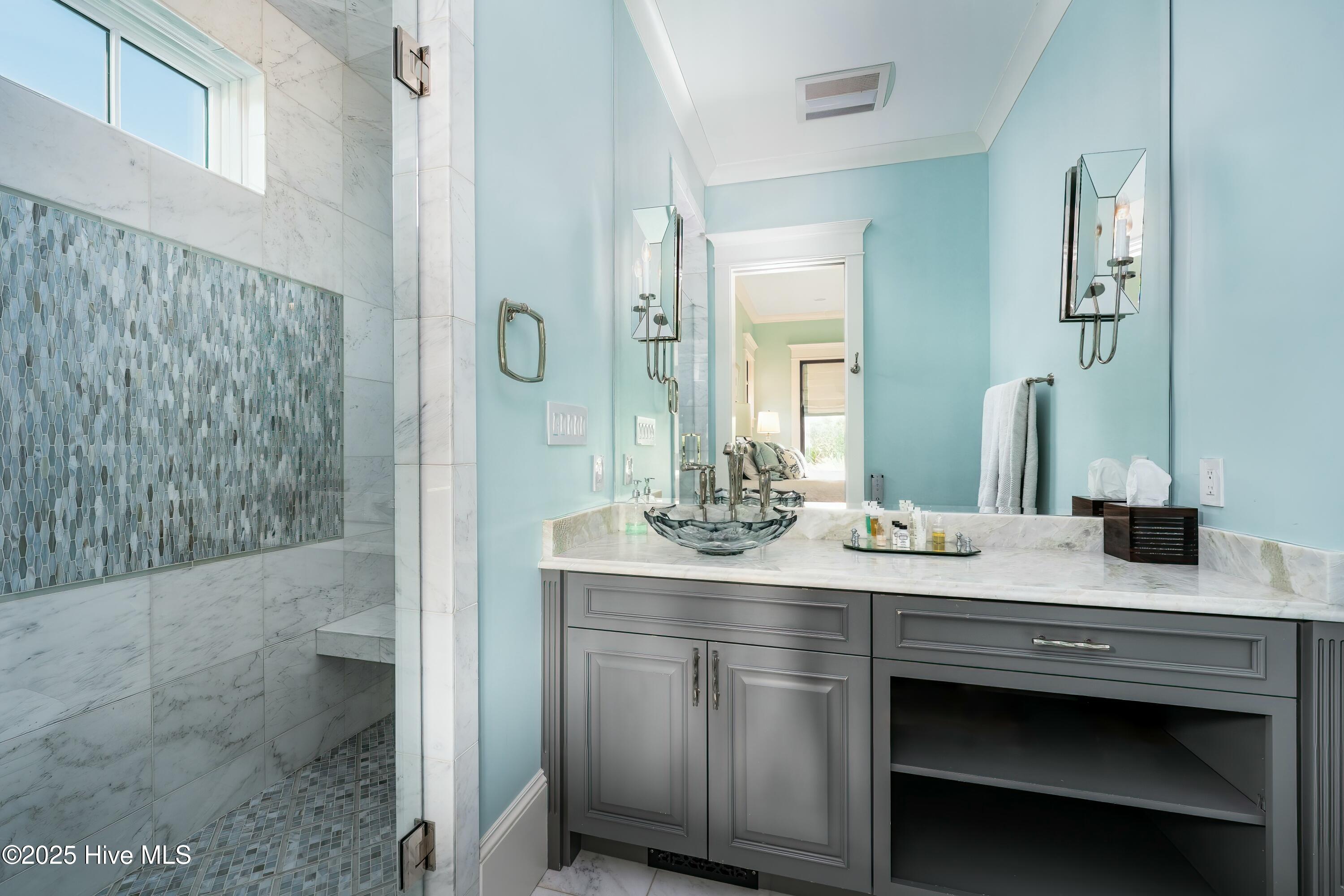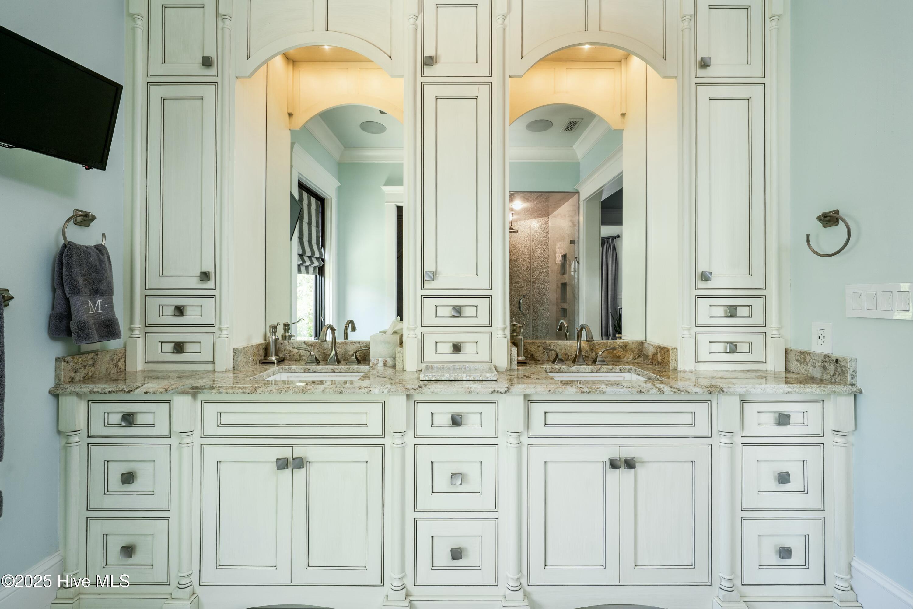 Outside, a zero‑entry pool and spa, two outdoor kitchens, a fire pit, and a swim‑up bar create a true resort‑style oasis. The lower level adds an entertainment room and a boater's dream garage--complete with a custom tackle workshop, teak island, rod storage, and a commercial ice machine. Inside, you'll find a bright, coastal‑inspired living area with rich wood accents. From a chef‑grade gourmet kitchen to multiple decks for outdoor entertaining, two family rooms spread over separate levels, and an elevator for seamless access, every detail is crafted for both style and functionality.