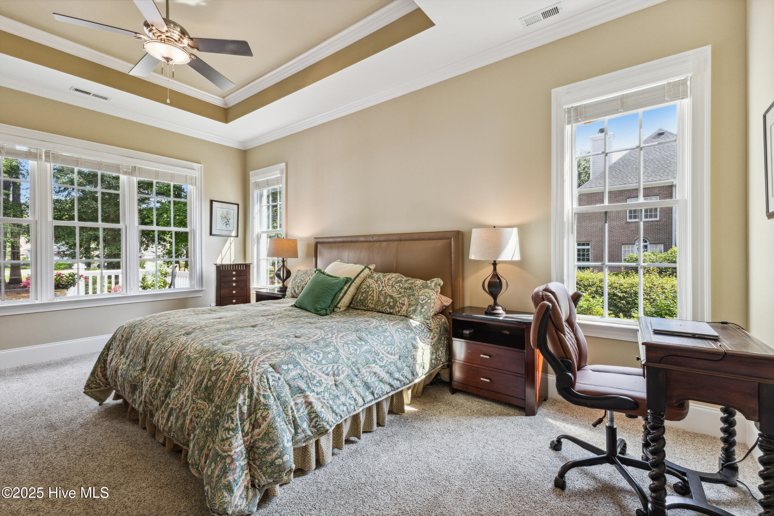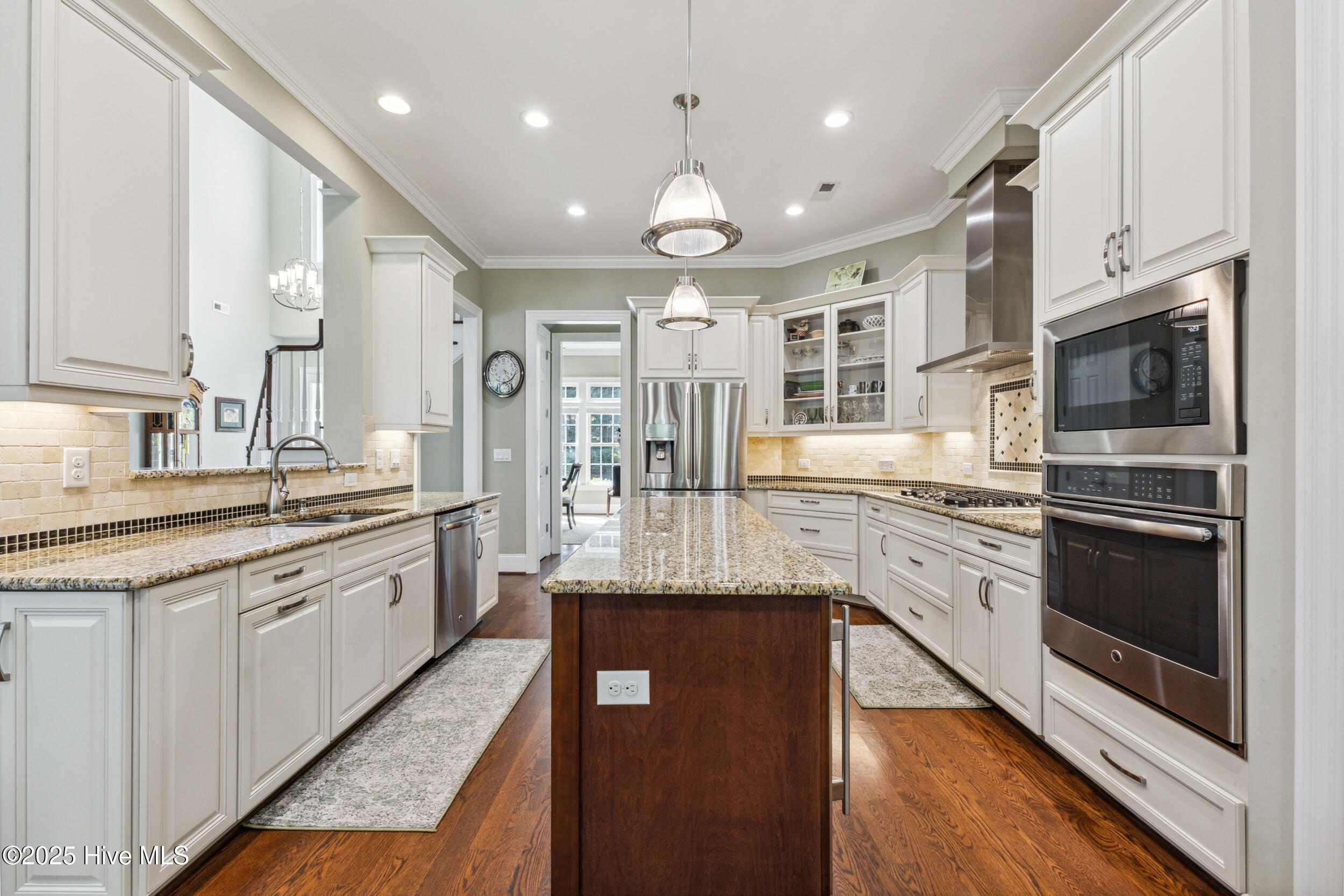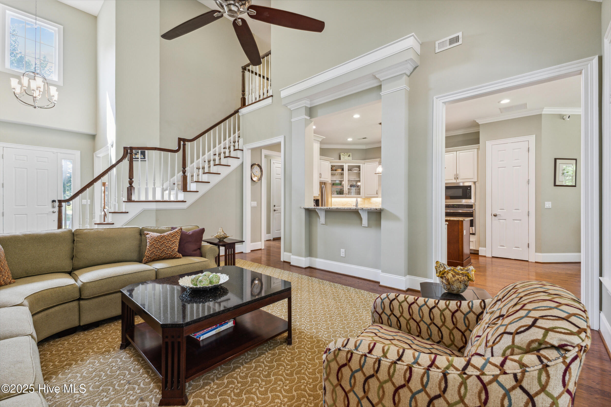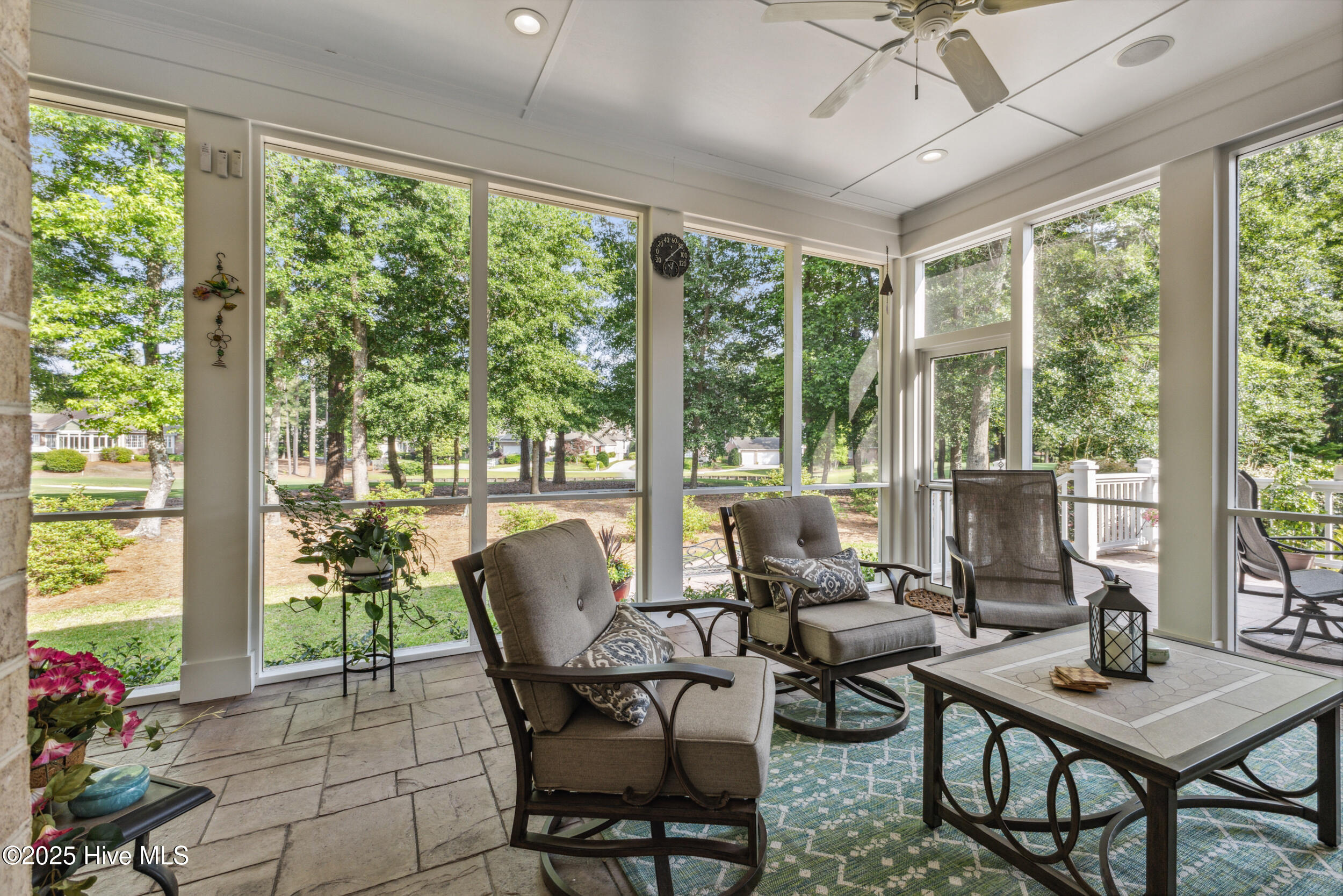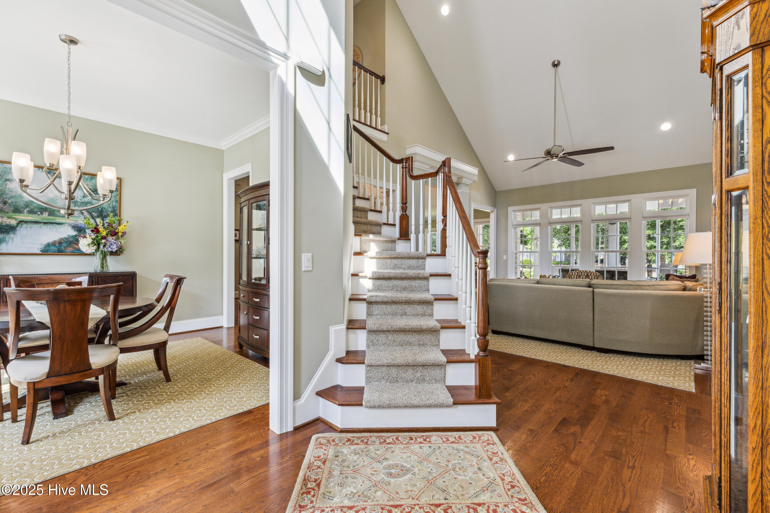 This beautifully maintained 4-bedroom, 3-bath home offers 3,331 sq ft of thoughtfully designed living space in the sought-after, gated community of Porters Neck Plantation, showcasing gorgeous views of the 4th and 5th holes of the Tom Fazio-designed golf course. A charming circular driveway leads to a spacious 3-car garage, offering both curb appeal and functionality. Inside, the first-floor primary suite features a luxurious en-suite bath and walk-in closet. The open-concept kitchen is equipped with granite countertops, stainless steel appliances, and a breakfast nook that flows into the bright and airy living space. Enjoy seamless indoor-outdoor living with a screened-in porch and expansive back deck, perfect for morning coffee or evening gatherings overlooking the fairway. Upstairs, you'll find two additional bedrooms and a spacious movie room with projector and screen--ideal for family fun or entertaining guests. Additional features include a whole home generator for peace of mind and an encapsulated crawlspace, enhancing comfort and efficiency year-round. Residents have the option to join Porters Neck Country Club, featuring premier golf, swimming, tennis, and fitness amenities. Homeowners also enjoy deeded access to a private community boat ramp, dock, and picnic area on the Intracoastal Waterway. This is golf course living at its finest--don't miss this rare opportunity in one of Wilmington's most desirable communities.