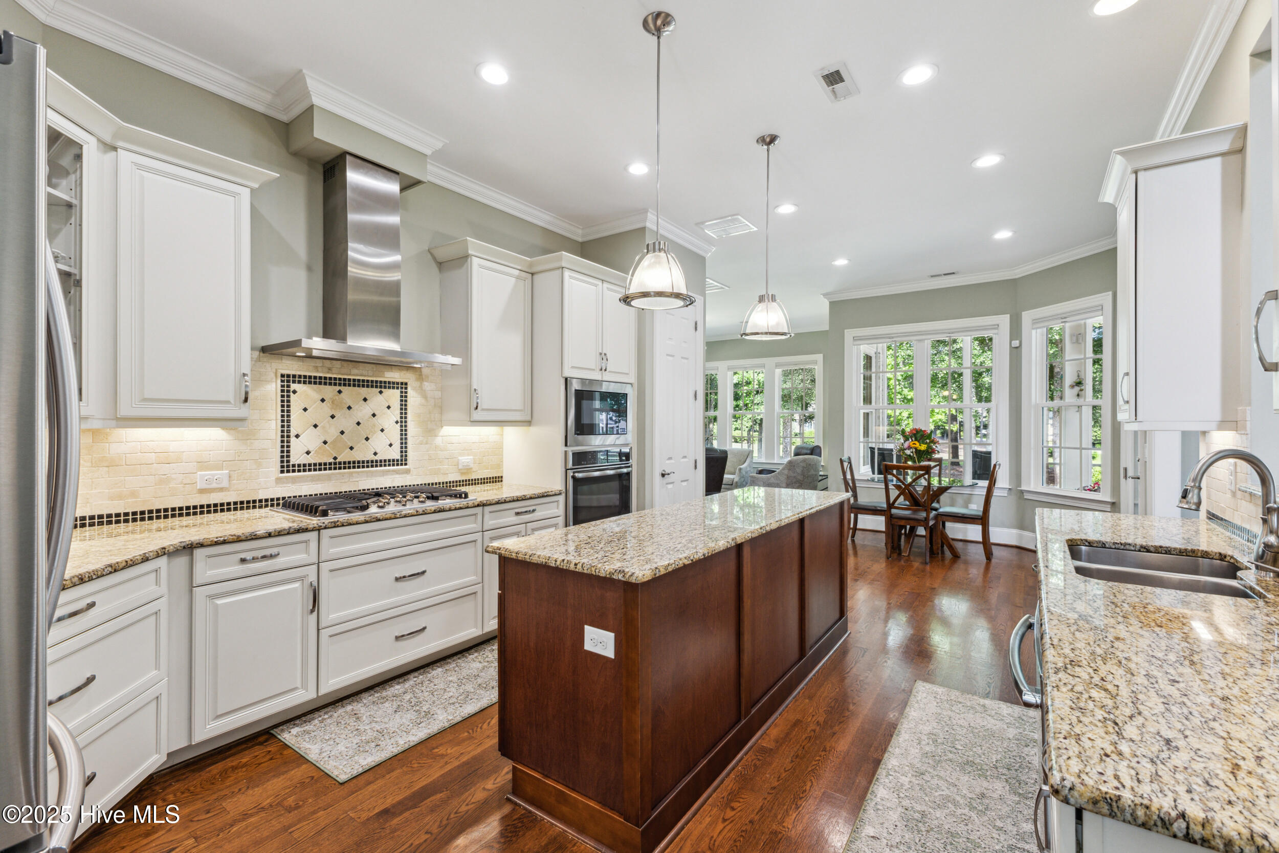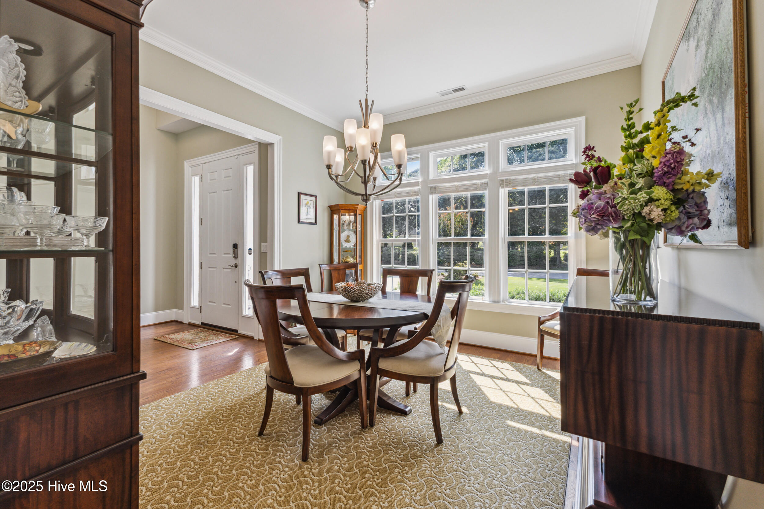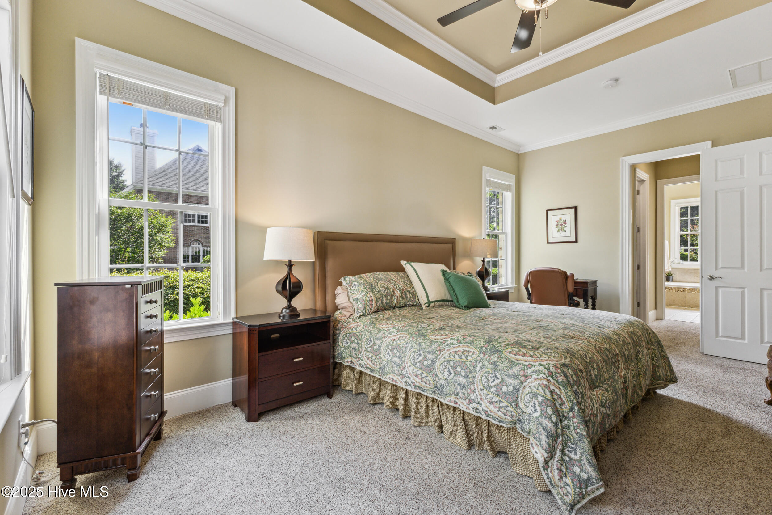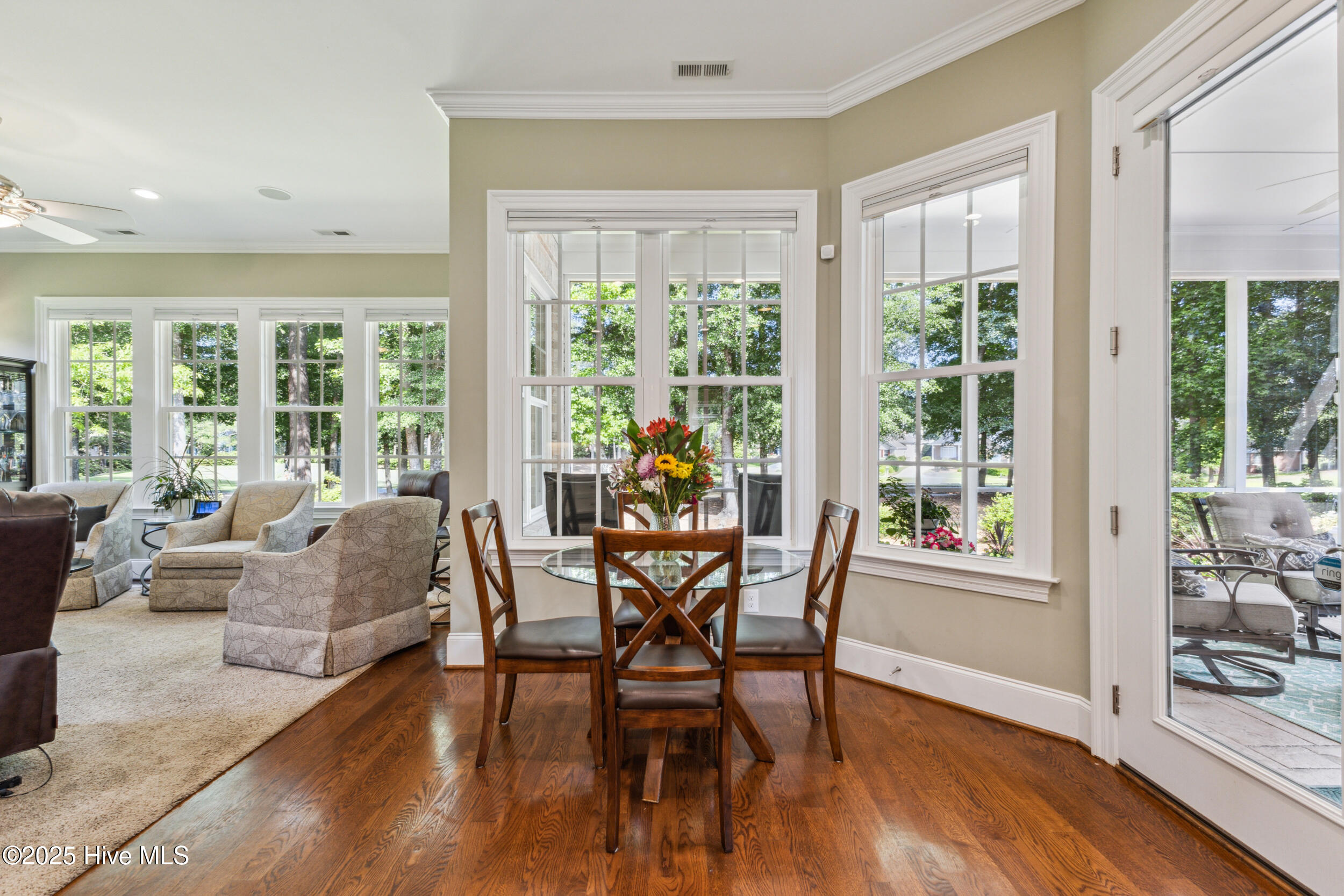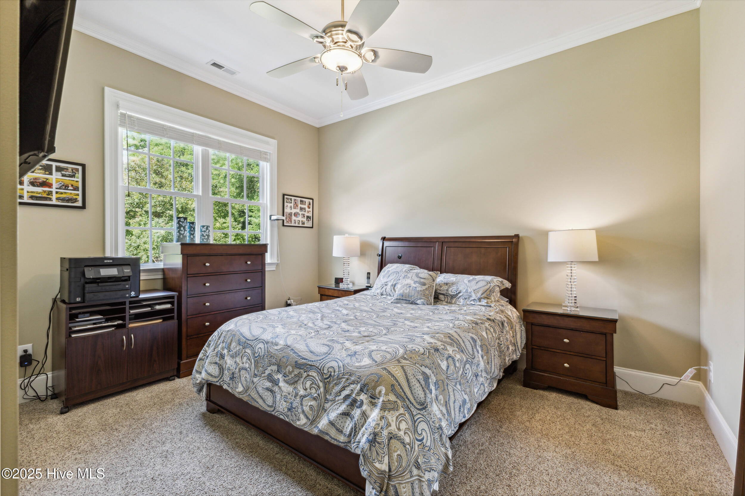 This beautifully maintained 4-bedroom, 3-bath home offers 3,331 sq ft of thoughtfully designed living space in the sought-after, gated community of Porters Neck Plantation, showcasing gorgeous views of the 4th and 5th holes of the Tom Fazio-designed golf course. A charming circular driveway leads to a spacious 3-car garage, offering both curb appeal and functionality. Inside, the first-floor primary suite features a luxurious en-suite bath and walk-in closet. The open-concept kitchen is equipped with granite countertops, stainless steel appliances, and a breakfast nook that flows into the bright and airy living space. Enjoy seamless indoor-outdoor living with a screened-in porch and expansive back deck, perfect for morning coffee or evening gatherings overlooking the fairway. Upstairs, you'll find two additional bedrooms and a spacious movie room with projector and screen--ideal for family fun or entertaining guests. Additional features include a whole home generator for peace of mind and an encapsulated crawlspace, enhancing comfort and efficiency year-round. Residents have the option to join Porters Neck Country Club, featuring premier golf, swimming, tennis, and fitness amenities. Homeowners also enjoy deeded access to a private community boat ramp, dock, and picnic area on the Intracoastal Waterway. This is golf course living at its finest--don't miss this rare opportunity in one of Wilmington's most desirable communities.