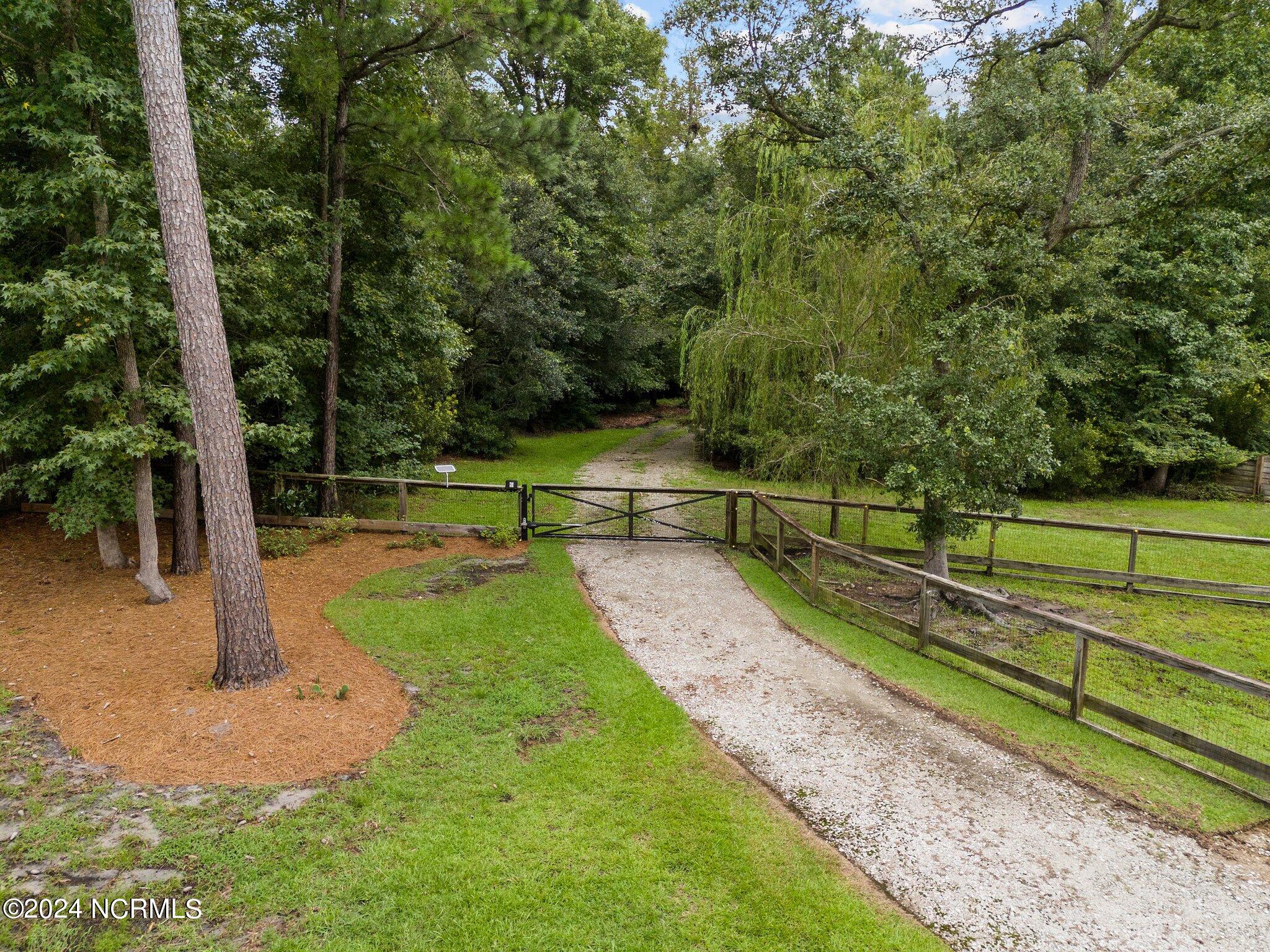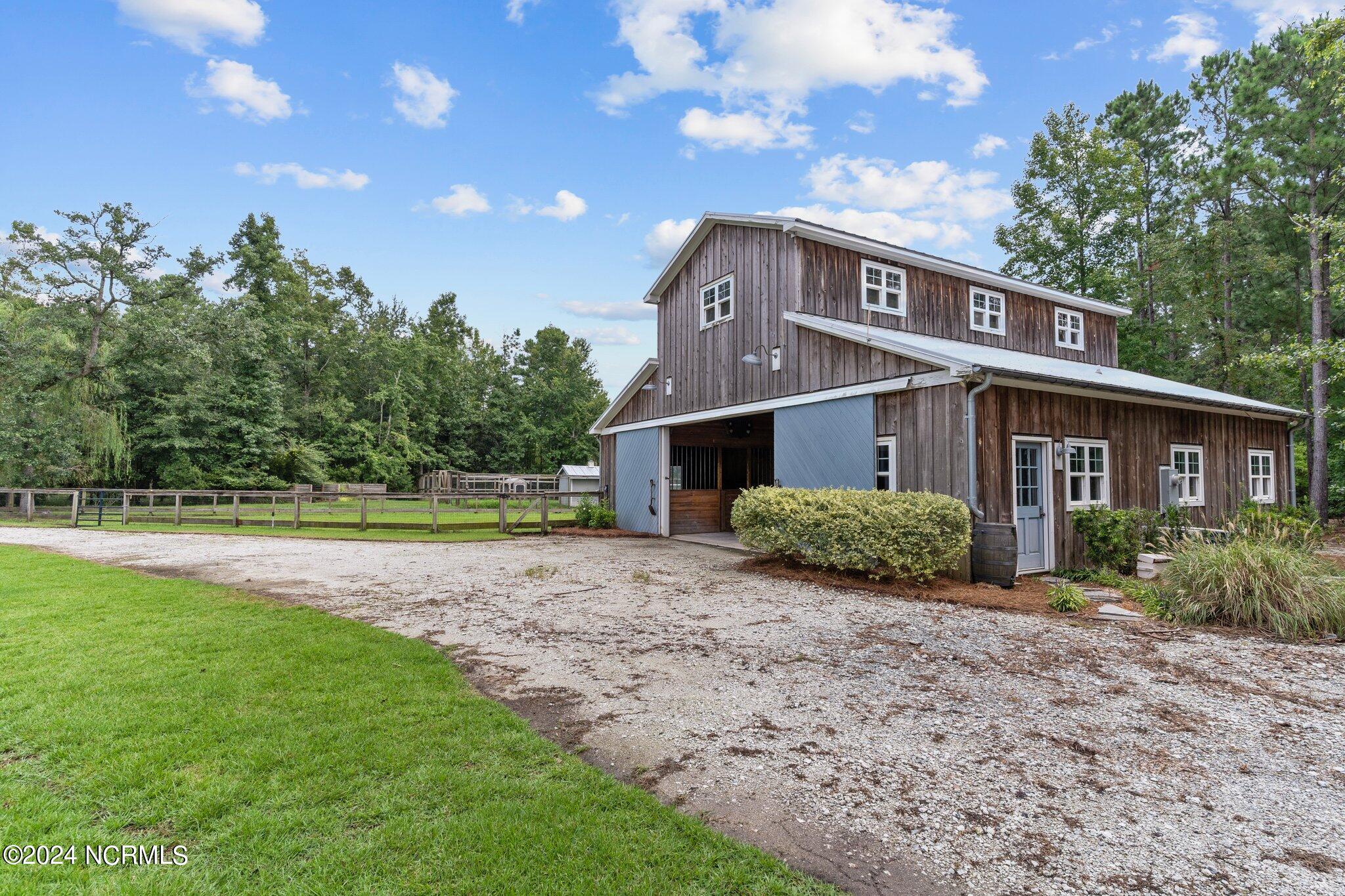 Step outside the backyard to find a unique pool complex with a 1969 Bambi Airstream pool house. The property also includes a full-size barn with custom cedar sliding doors and interior sinker cypress boards sourced from the Cape Fear River. The barn offers two air-conditioned spaces, two horse stalls, and an additional entertainment area.